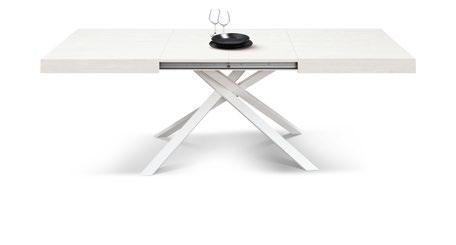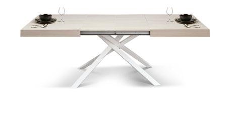 base in metallo colore bianco piano nobilitato finitura olmo perla con 2 allunghe interne da 40 cm.
