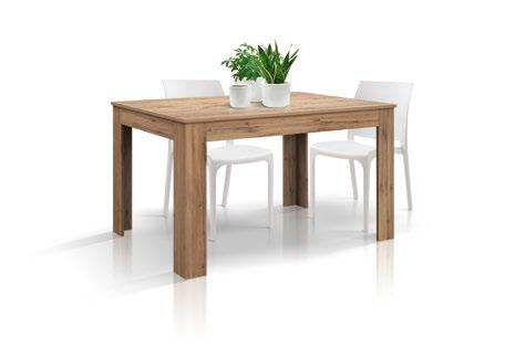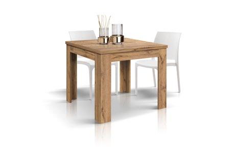 tavolo struttura e piano in nobilitato finitura rovere rustico. table with structure and top in in melamine rustic oak wood finish. cm. l 90/180 p. 90 h. 79/77