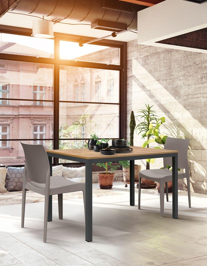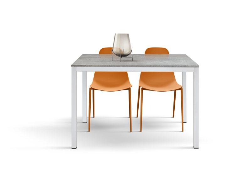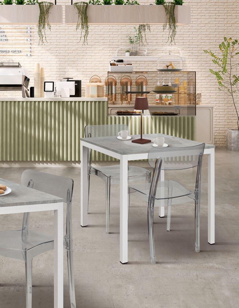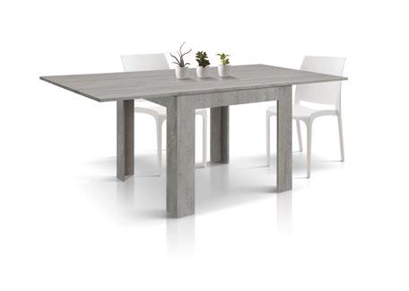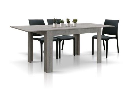 tavolo struttura e piano in nobilitato finitura grigio cemento. table with structure and top in melamine cement gray finish. cm. l 90/180 p. 90 h. 79/77