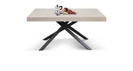 tavolo struttura e piano in nobilitato finitura olmo perla. table with structure and top in melamine in pearl elm wood finish. cm. l 90/180 p. 90 h. 79/77
