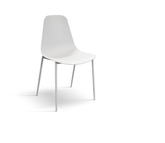 sedia struttura in metallo e seduta in polipropilene colore bianco. chair with metal structure and seat in white color polypropylene.