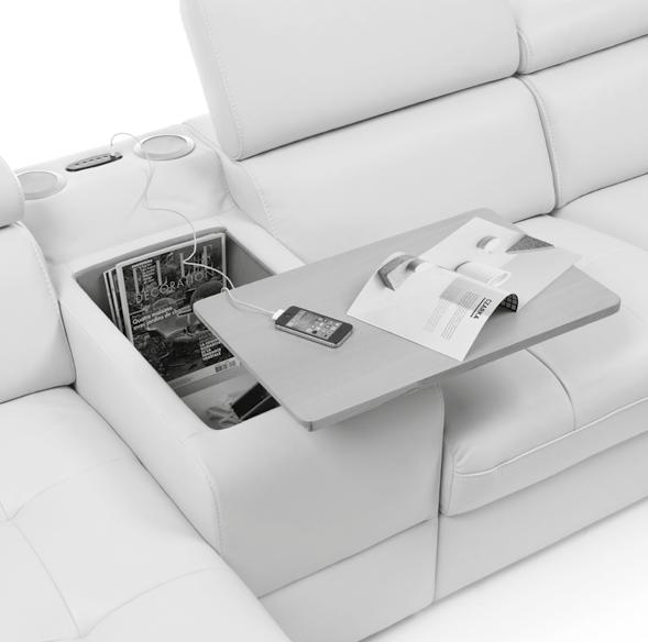 Les appui-têtes inclinables, grâce à l’ajustement graduel de l’angle d’inclinaison, ils assurent un appui confortable pour la nuque pendant la lecture, le repos, et les moments passés devant la télévision. En option, les appui-têtes amovibles peuvent être remis sur un autre dossier quelconque.