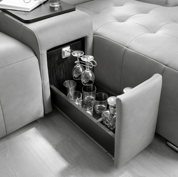 Il y a beaucoup de types de bars qui offrent toute une gamme de possibilités: bar avec des rangement à ouverture par le dessus, avec un tiroir coulissant vers l’avant, bar avec un panneau en bois que vous pouvez utiliser comme une table, bar avec un panneau capitonné en cuir ou en tissus, bars triangulaires, rectangulaires, avec porte-gobelets, bars situés au milieu ou à l’extrémité (à la fin du module).