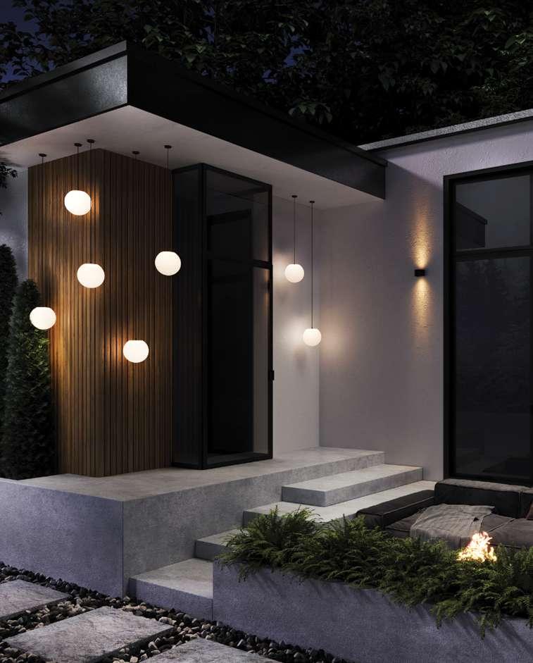 At the same time, it is not enough to appreciate the light pattern of decorative exterior lamps. There can be several options for facade lighting: uniform flood lighting, accent lighting and contour lighting to highlight the constructive and decorative elements of the facade, visually eliminate imperfections, as well as background lighting of the space around the house for a harmonious black and white pattern. Make compositions and place the right accents for a bright end to the day.