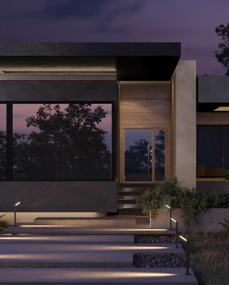 Dabei gibt es das bereits wenig genug, um das Lichtmuster der dekorativen Außenleuchten zu schätzen. Es gibt mehrere Möglichkeiten der Fassadenbeleuchtung: gleichmäßige Flutlichtbeleuchtung, Akzentbeleuchtung und Konturbeleuchtung zur Hervorhebung der Struktur und der dekorativen Elemente der Fassade, zur optischen Korrektur von Mängeln sowie Hintergrundbeleuchtung rund um das Haus für ein harmonisches Licht- und Schattenspiel. Komponieren und setzen Sie die richtigen Akzente, um einen hellen Abschluss des Tages zu setzen.