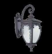 FR Corps en aluminium, teintes : bronze ancien et noir avec dorée. Globe : verre ondulé transparent. IP44. Protection contre la corrosion et les changements de températures. Source de lumière : ampoule à culot E27.