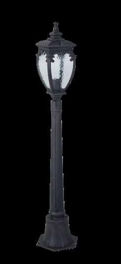 EN Aluminum body is designed using ornamental casting technology. Resistant to corrosion and temperature differences. Powder coating with brown color. Light source — lamp with E27 base.