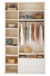 La cabina armadio Big sfrutta lo spazio utile tra due pareti. Le dimensioni più ampie rispetto all’armadio consentono di contenere anche gli oggetti più ingombranti.