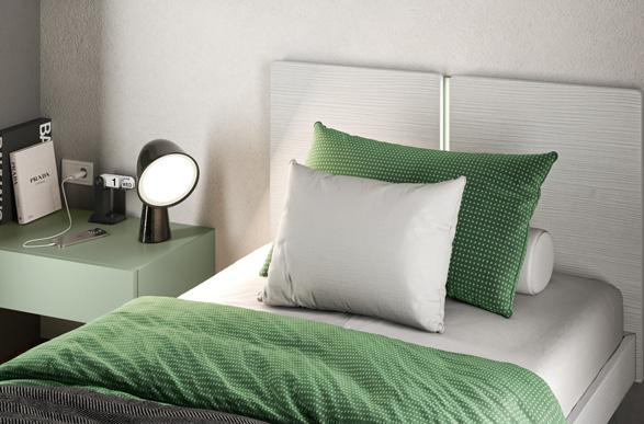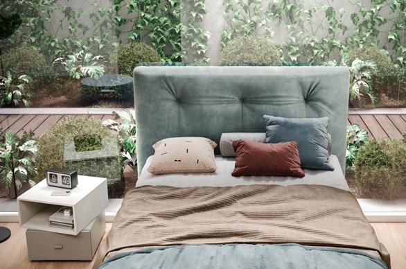 BED - The Zen Pillow bed has a large pillow that complements the very simple design of the headboard. The pillow has an 18mm panel core, a soft filling, and is covered in (removable) fabric or leatherette.