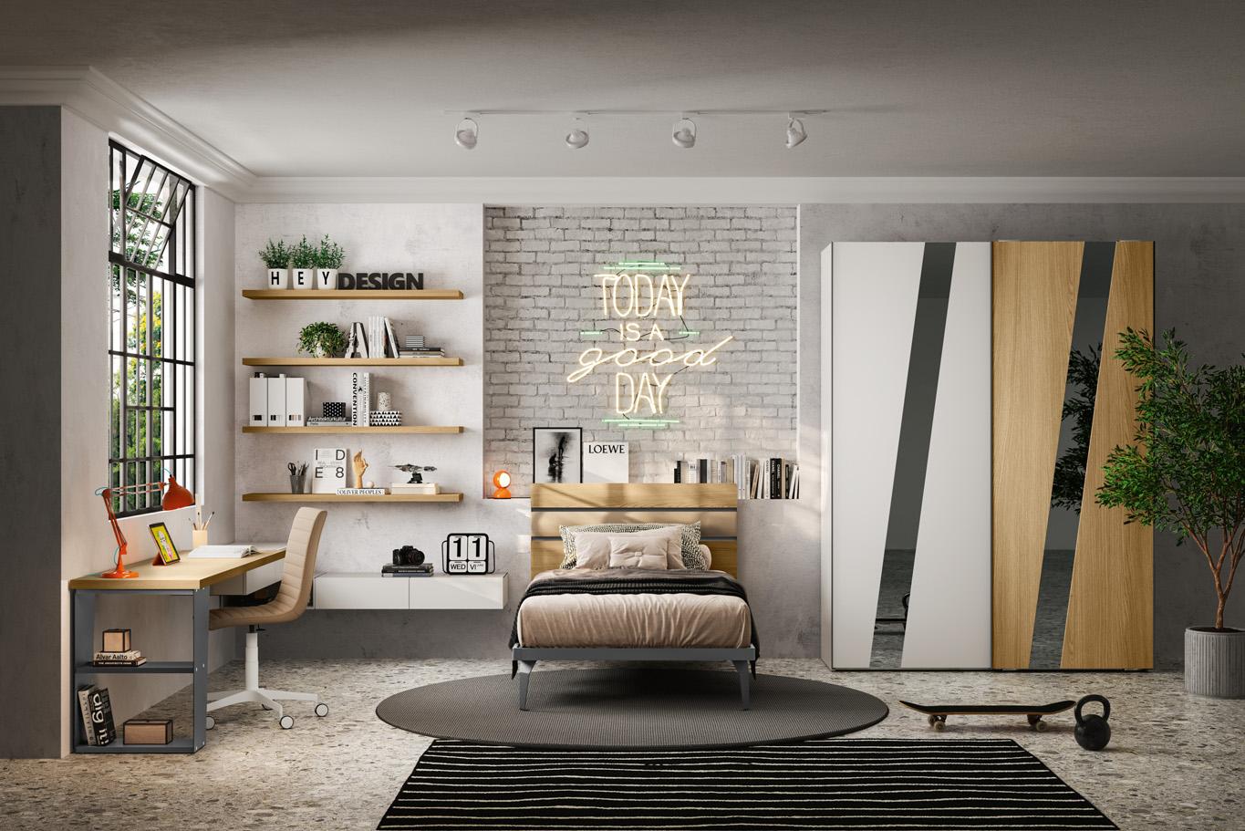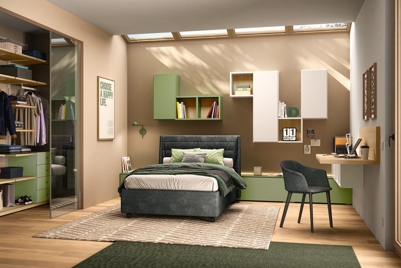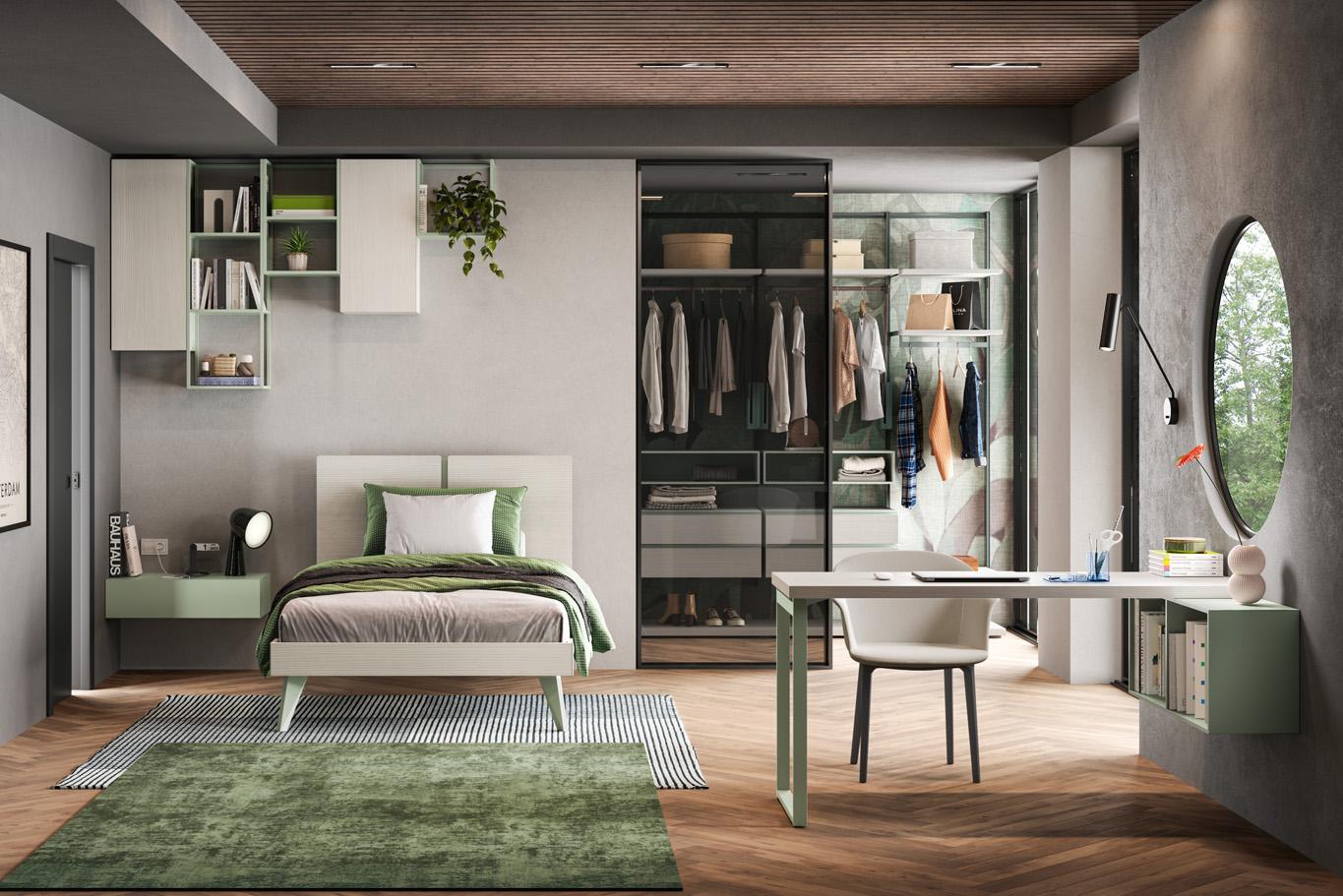 Camera con cabina armadio e scrivania sospesa