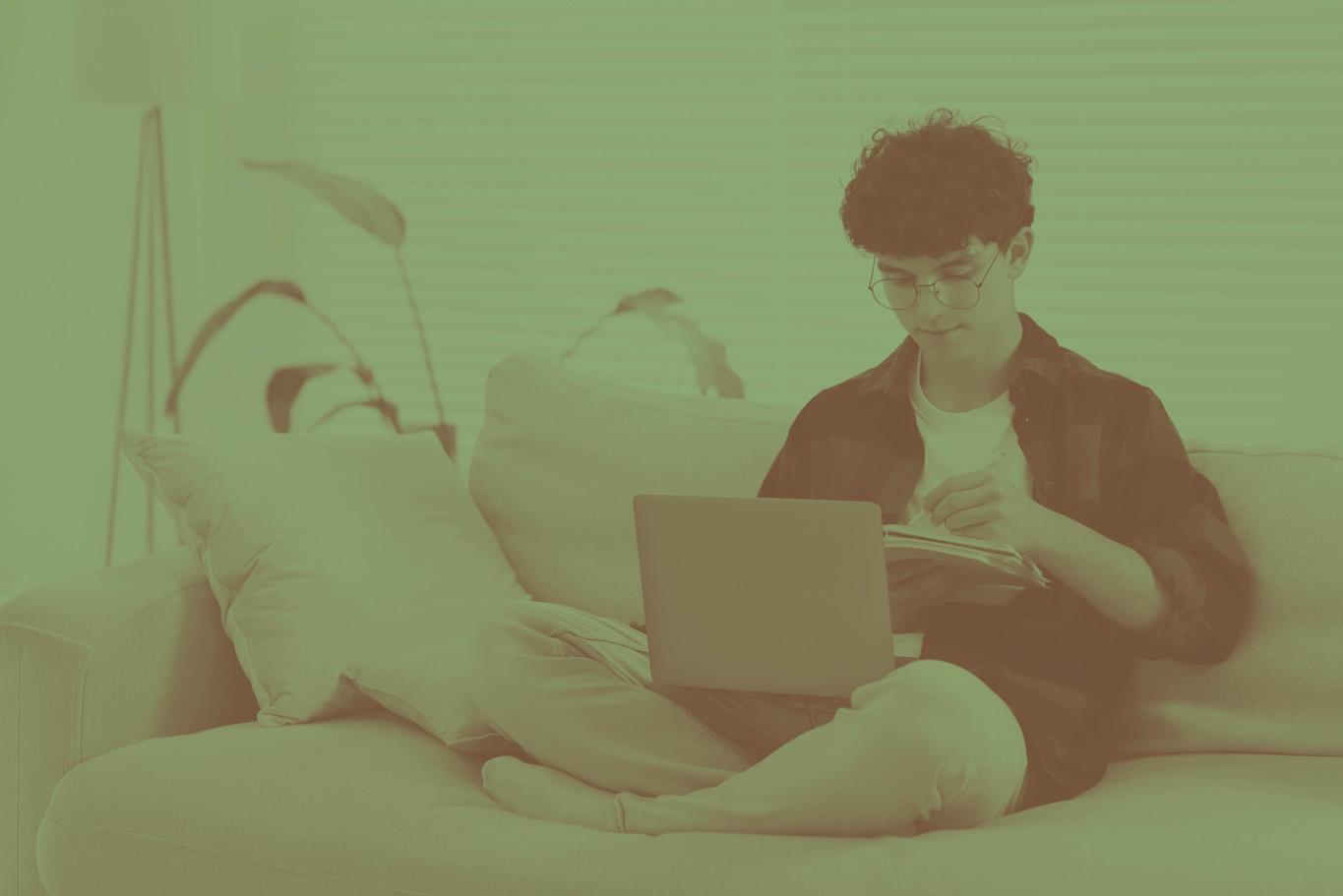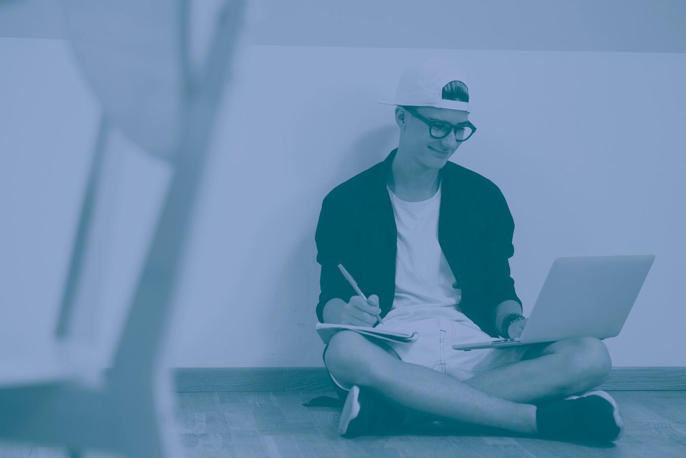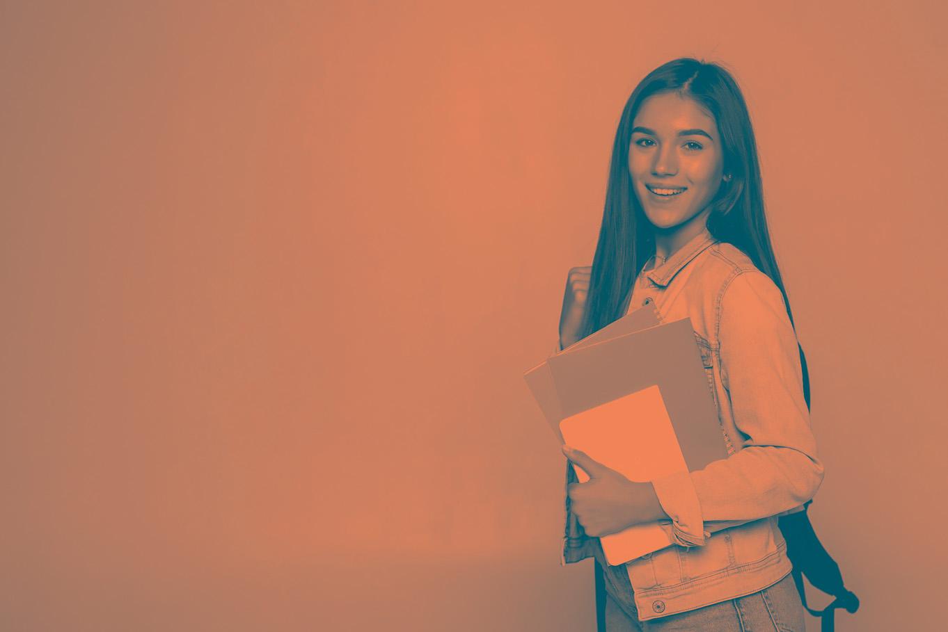 STUDY AREA - Study area furnished with a shaped laminate desk top and a floating wallbox with two drawers. To the right, the wardrobe is completed with a bookcase unit that offers plenty of storage space for books and notebooks.