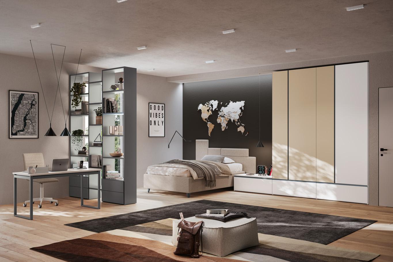 Camera con armadio scorrevole e libreria Outline