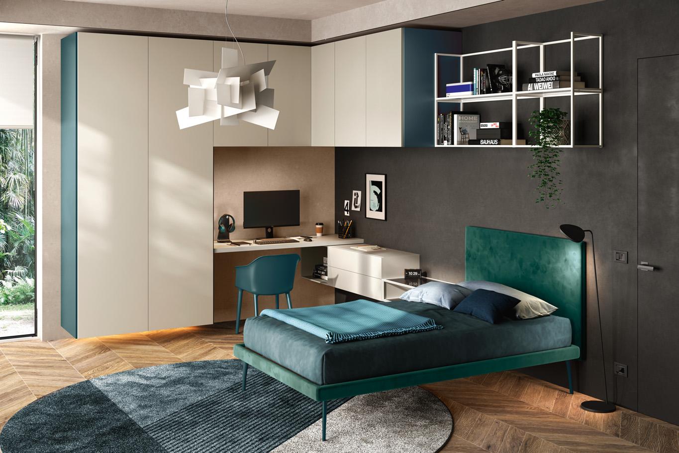 Camera con armadio a ponte e scrivania