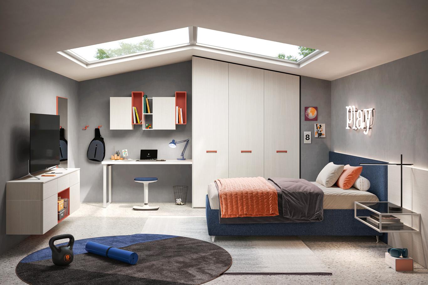 Camera con scrivania ad angolo