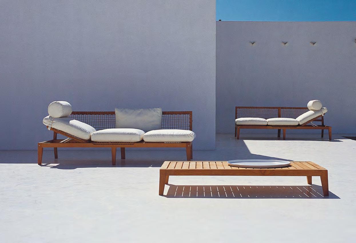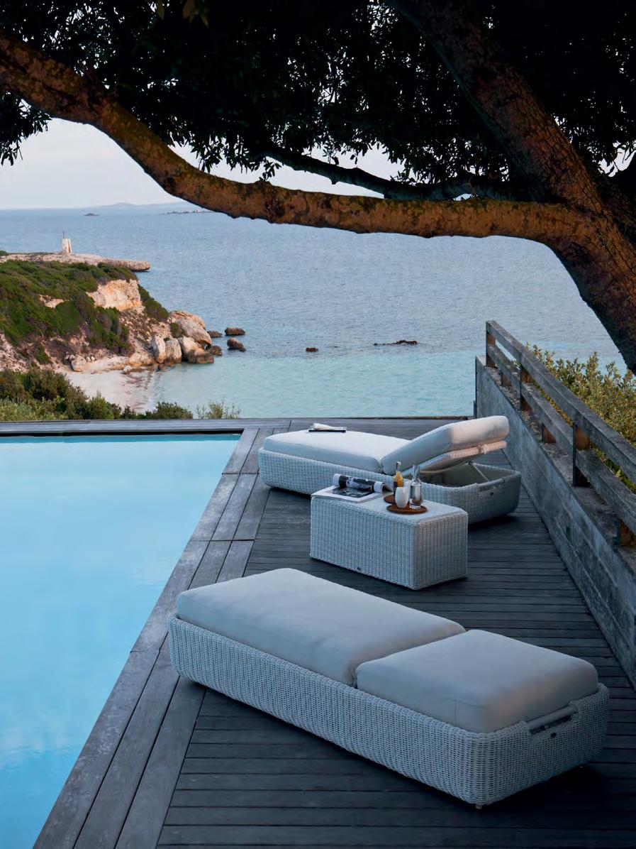 Enveloping proportions and solid shapes result in a range with traditional, recognisable and refined aesthetics, suited to relaxing moments, in harmony with the landscape.