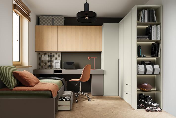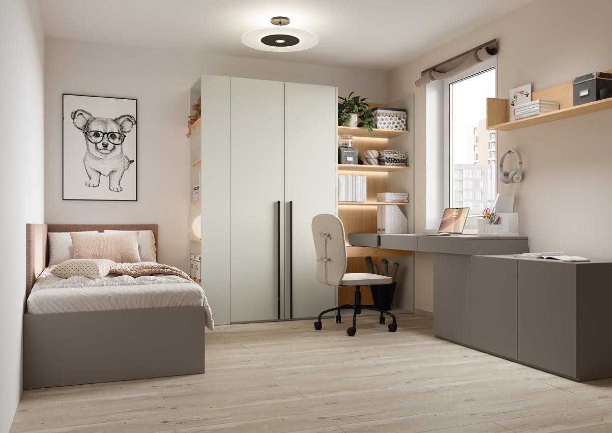 To przemyślane rozwiązanie, które pozwala na stworzenie spójnej i oszczędnej aranżacji, idealnej do niewielkich wnętrz. Wszystko po to, by każda strefa w pokoju – do nauki, odpoczynku i przechowywania miała swoje miejsce, bez kompromisów.