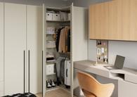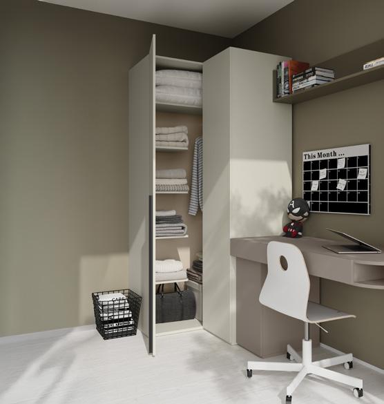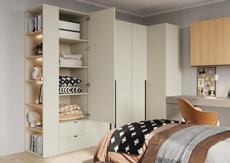 Kolekcja WOOW oferuje zestawy, które można dowolnie łączyć, przestawiać i rozbudowywać. Szafa, łóżko, regał, biurko –wszystko współgra, niezależnie od układu pokoju. Dzięki temu zagospodarujesz niemal każdą przestrzeń – sprytnie i estetycznie.