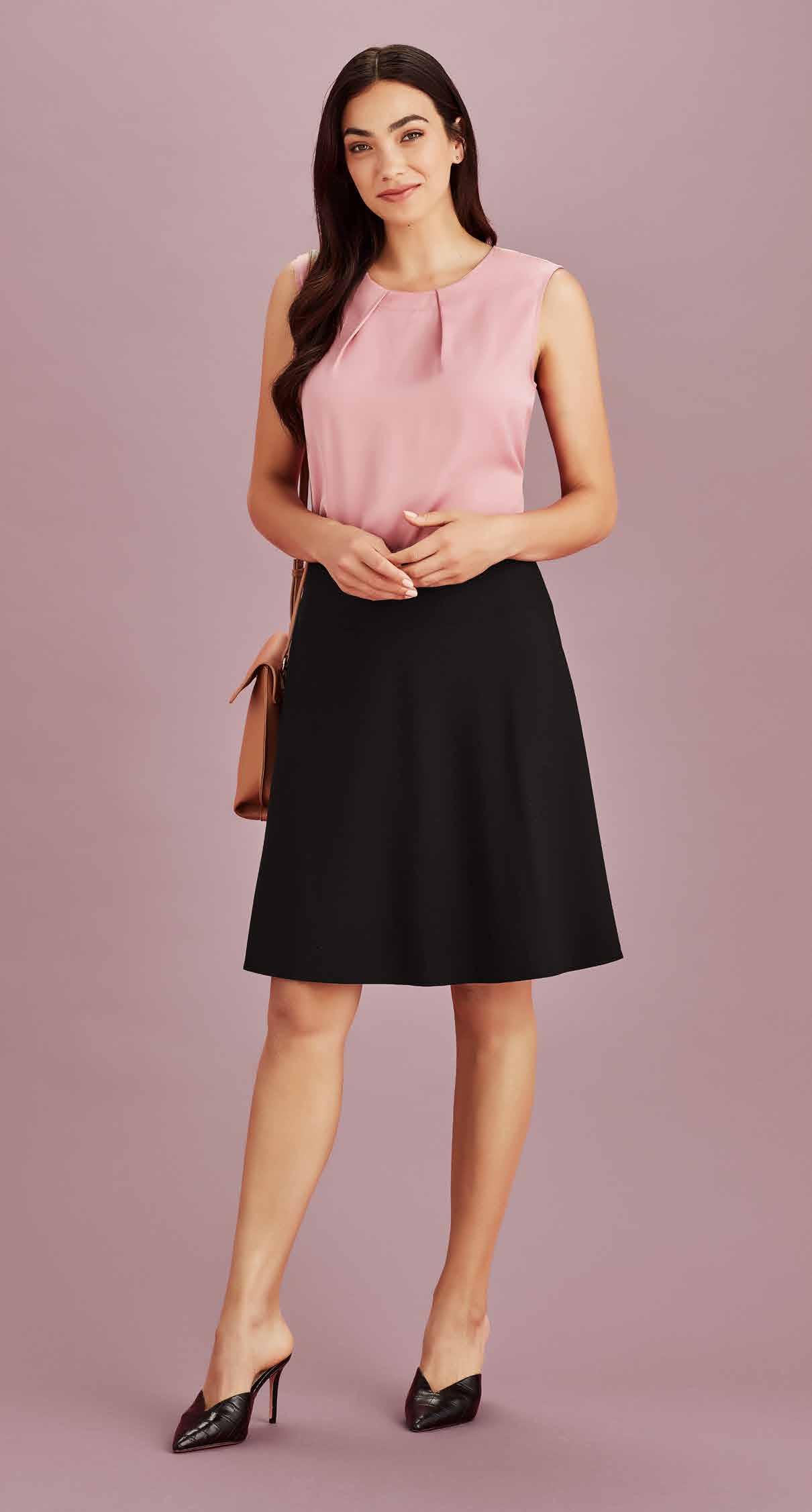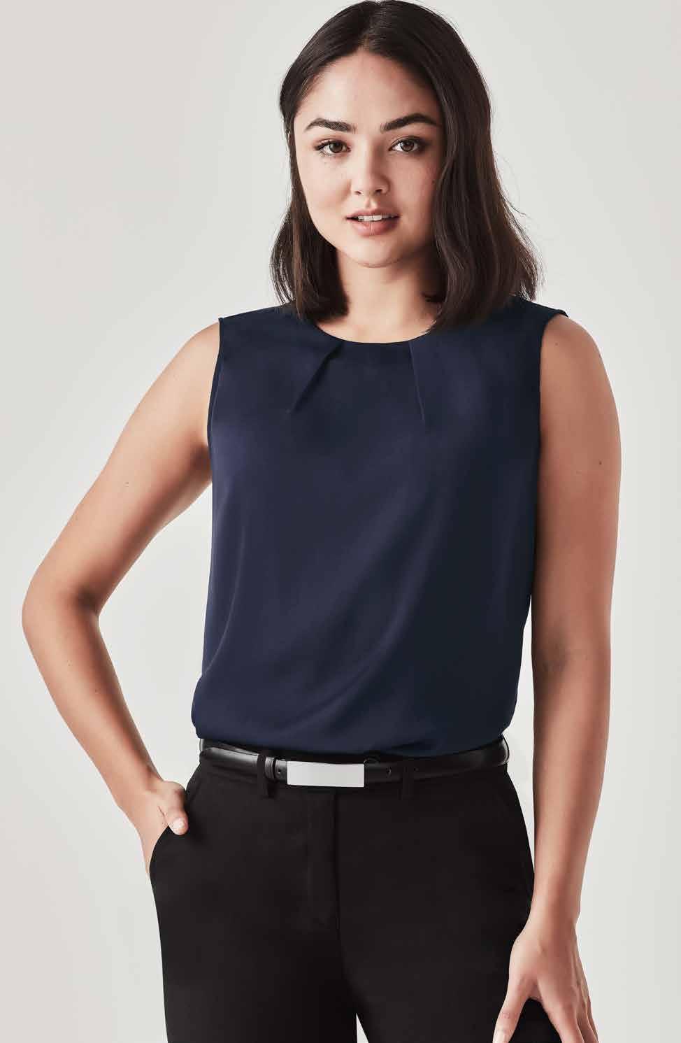 RB973LN WOMENS SLEEVELESS PLEAT DETAIL BLOUSEImpeccably cut from a soft Viscose/Nylon blend, with elegant boat neck detailing. A versatile wardrobe essential that’s perfect for layering.