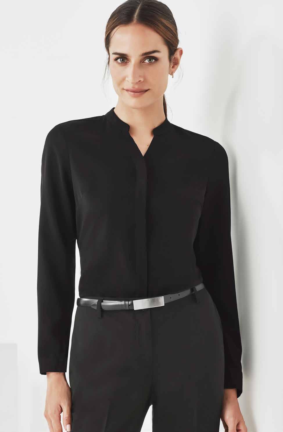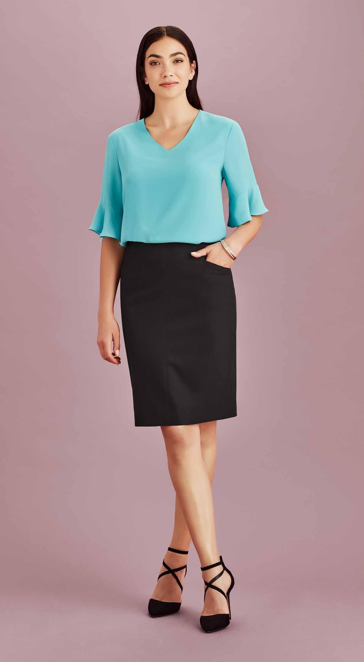 BLACK RB967LS WOMENS V-NECK PLEAT BLOUSE RASPBERRY NAVY AQUA DUSTY ROSE SILVERSilk-like hand feel with a hint of lustre for added sophistication. High twist and high-density yarn ensures no static cling. Subtle hammered finish fabric.