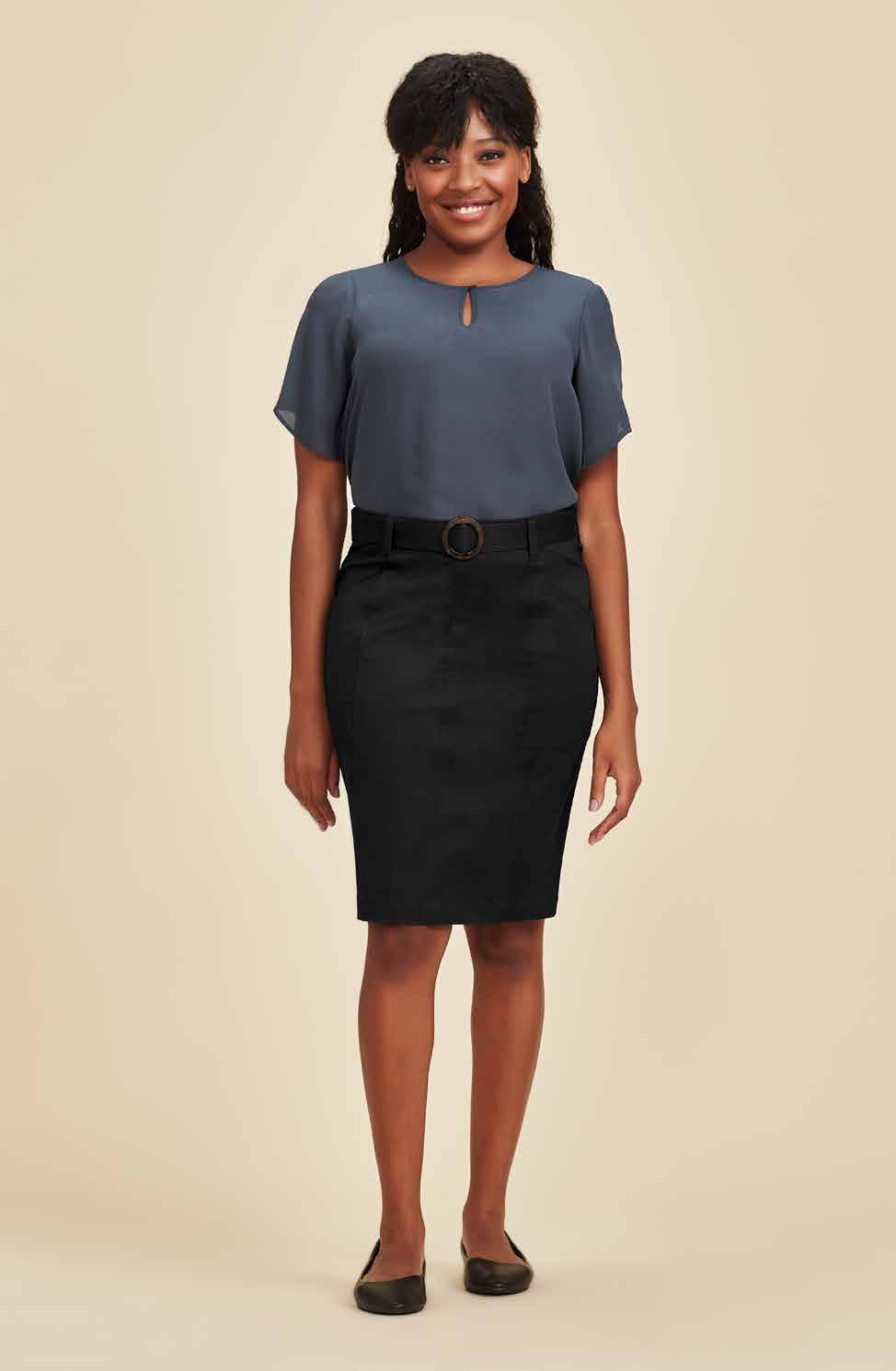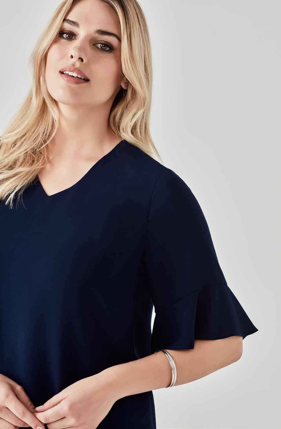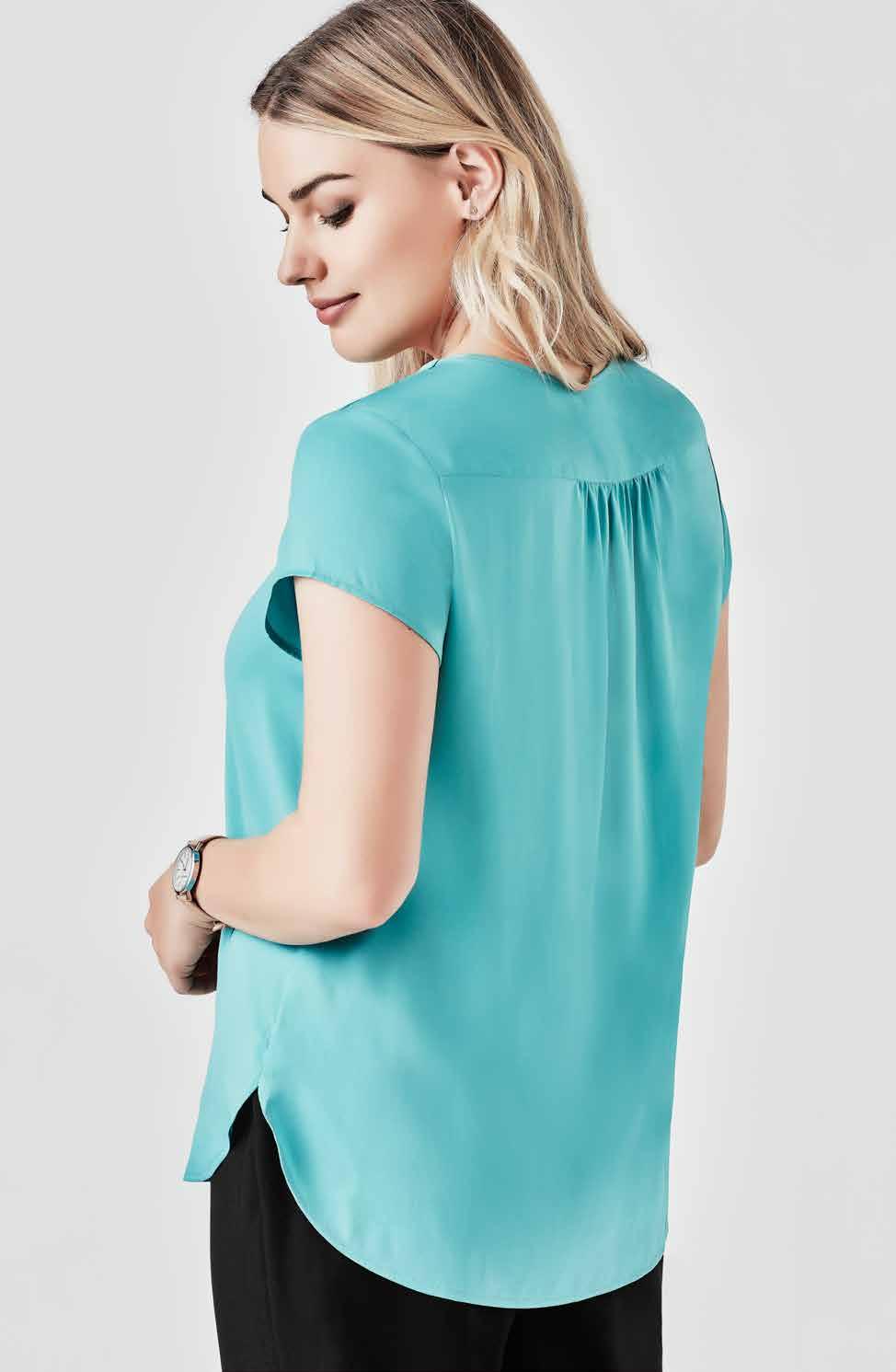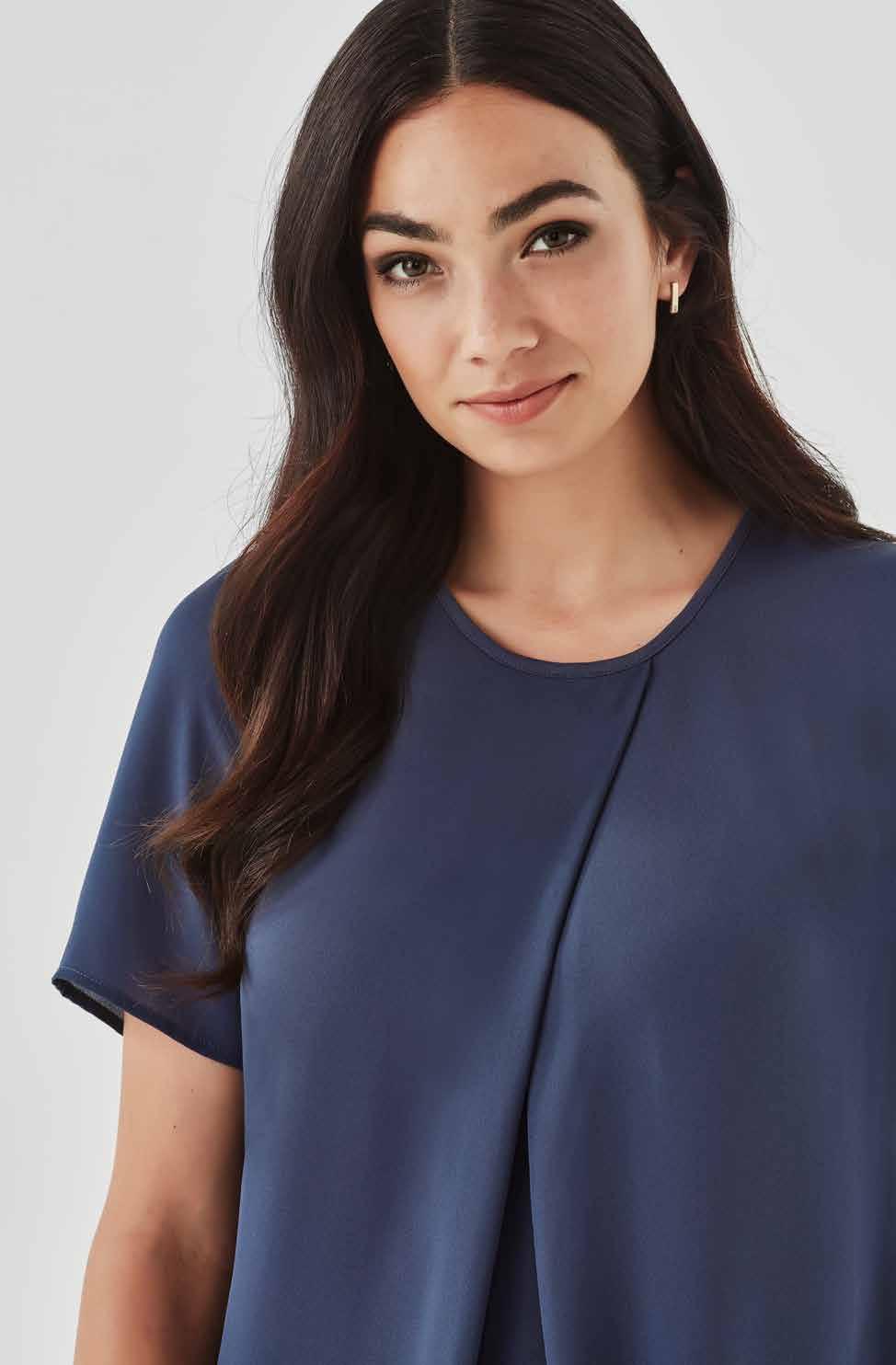 RB261LS WOMENS SHORT SLEEVE SOFT BLOUSE STORM BLUE COBALTSydney is designed to sit loosely on the body, featuring a breezy Georgette front and sleeves, with a stretch jersey back.
