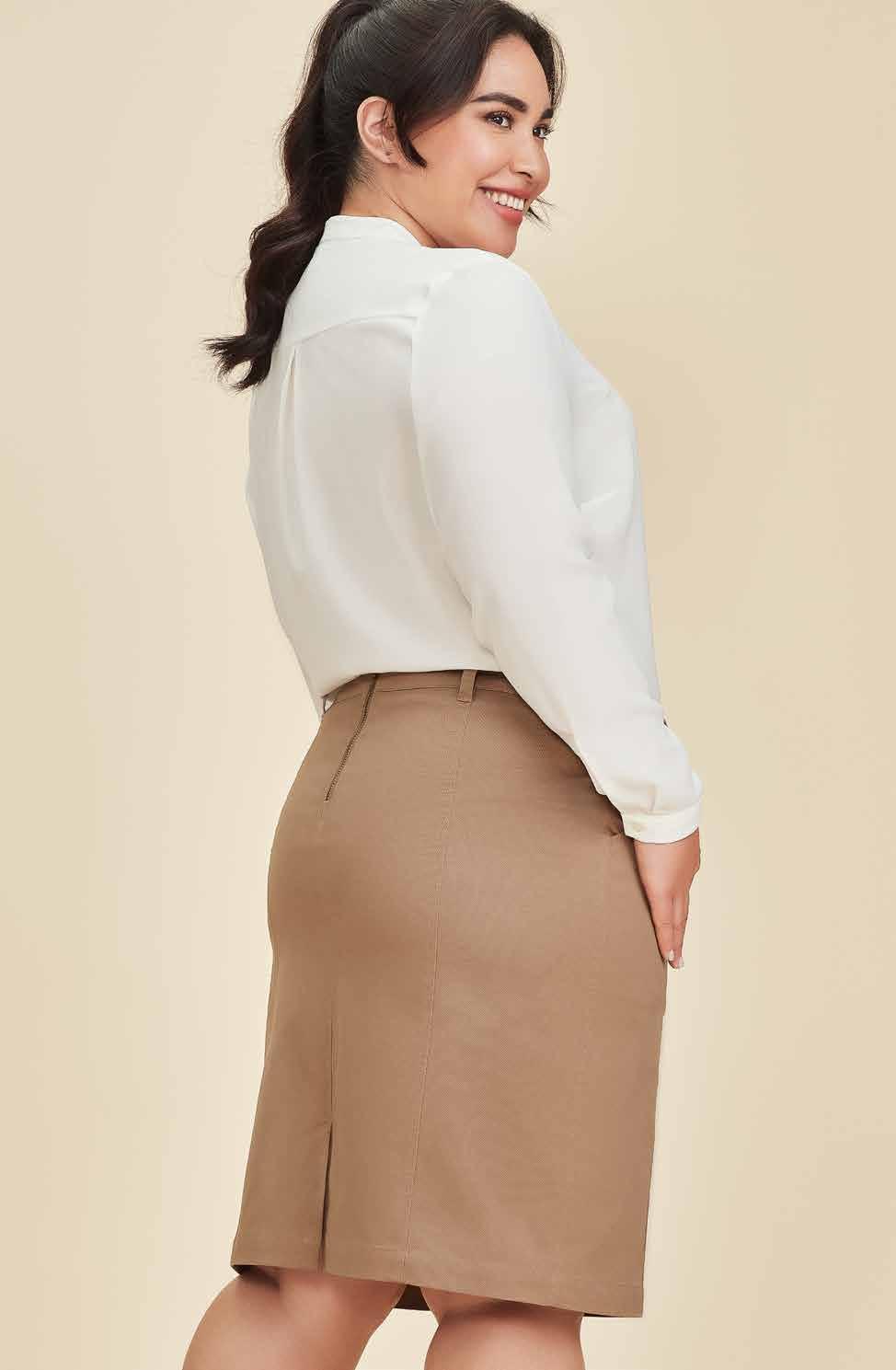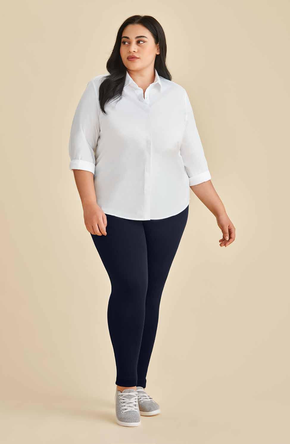 Semi-fitted style, with a relaxed fit through the body. Concealed front placket, dart detailing and secret bust button located inside the placket.