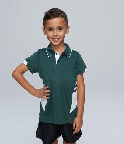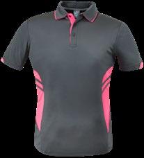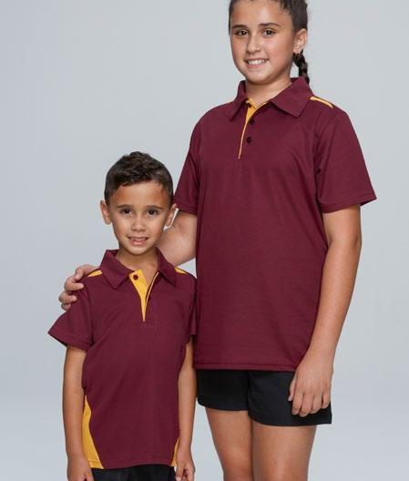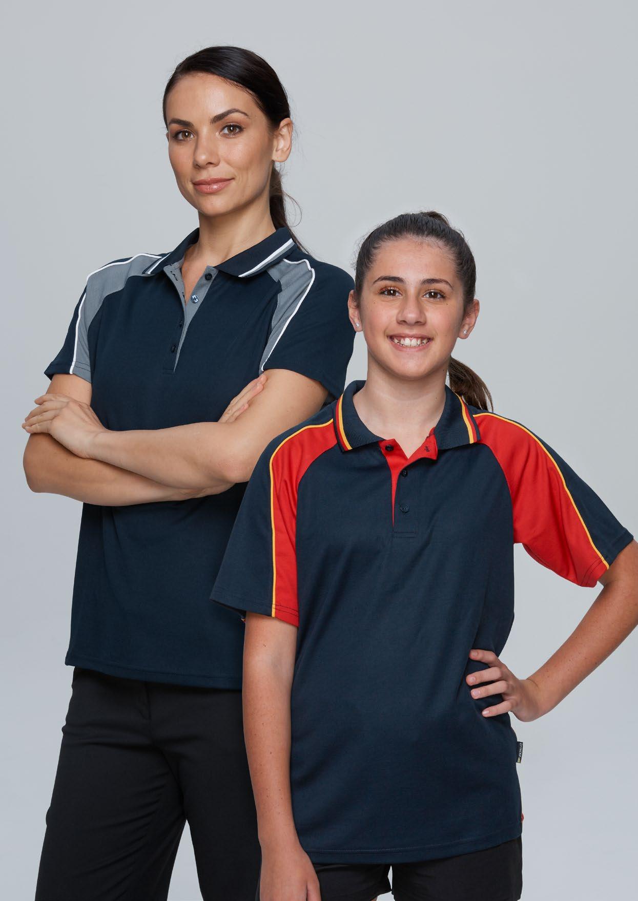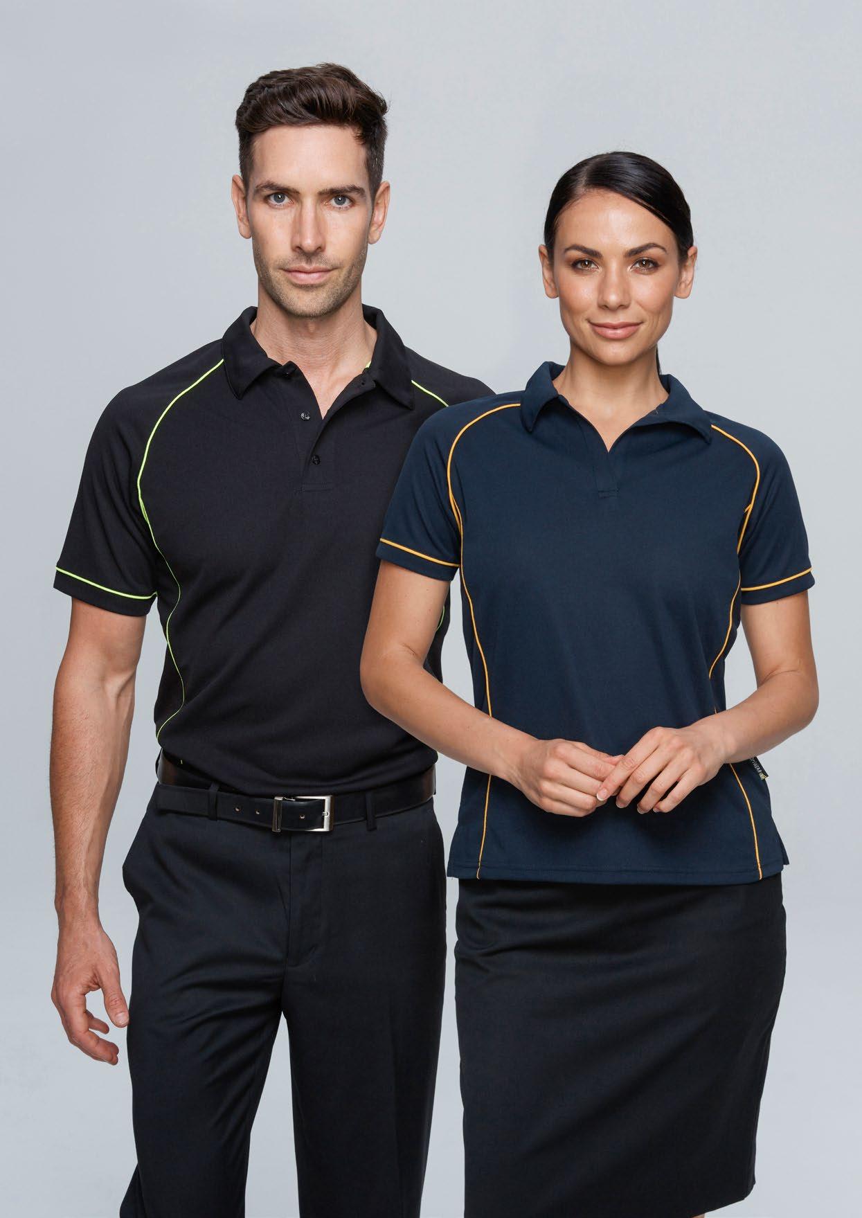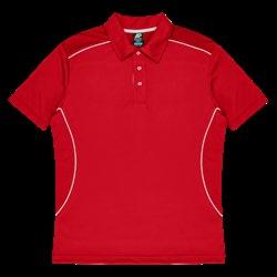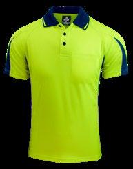 155gm 100% polyester moisture removal birdseye knit, easy care fabric, signature knit collar and arm band, three-button placket. (Loose pocket - mens only).