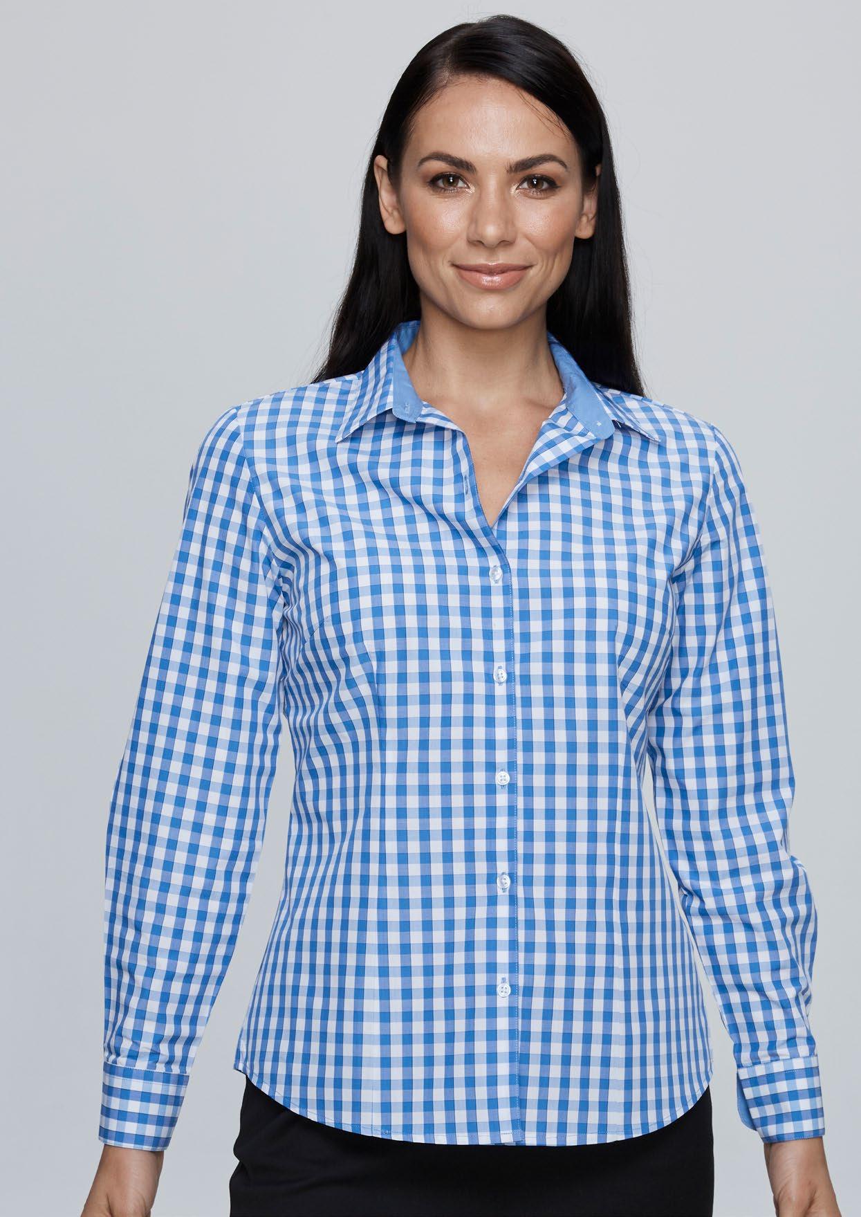 Featuring bust darts, slimming front and back waist darts, a ‘Magic Button’ to prevent gaping and bias cut cuff sleeves. The varied width bias cuff has a centre split and the collar offers a bias cut forming an angled arrow head finish.
