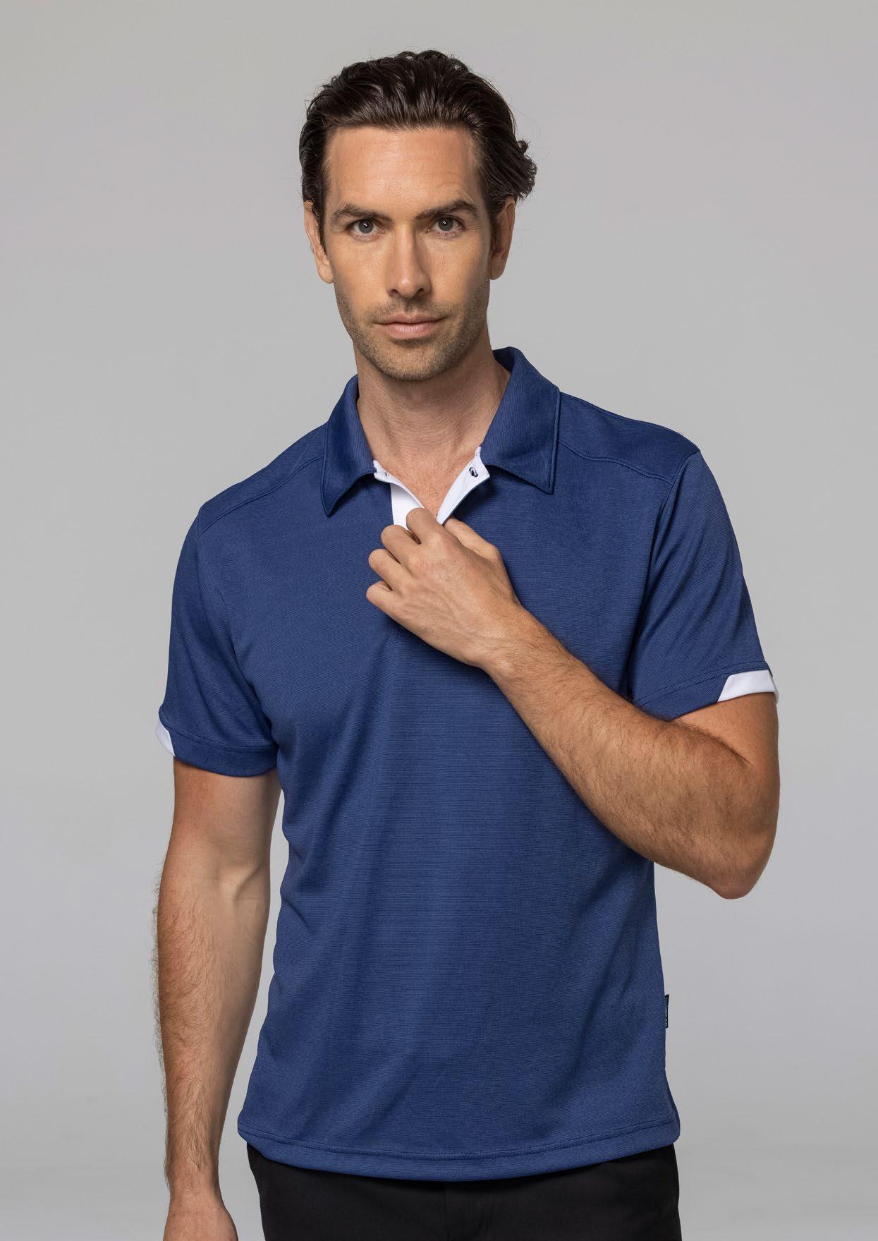 • Set in sleeve polo with self fabric collar