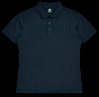 160gm 100% polyester mini-waffle knit, with moisture removal technology, easy care fabric and self fabric collar and a three-button placket. (Loose pocket - mens only).