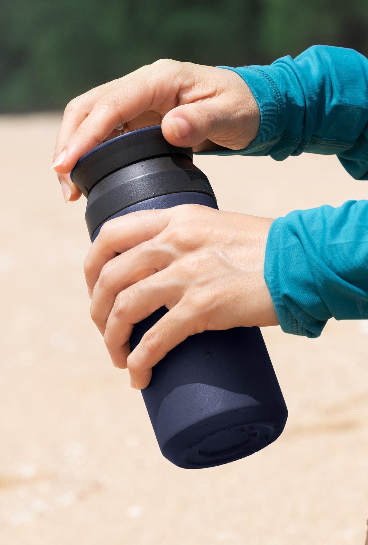 • Secure screw on Tritan lid with leak-resistant flip closure