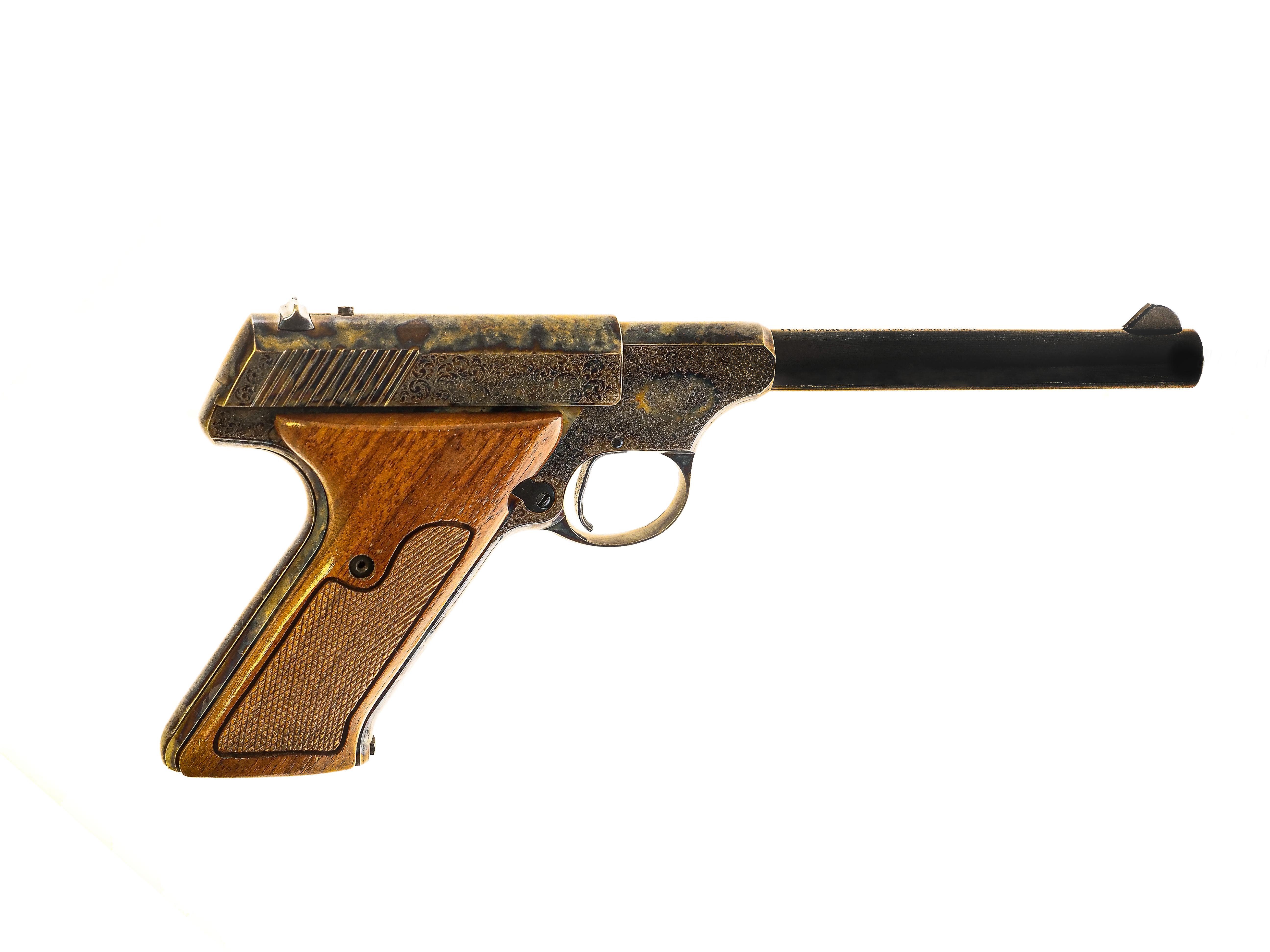 Standard Manufacturing and Buds Gun Shop are pleased to announce the engraved Model SG22. This 1918 John Moses Browning-designed automatic .22 pistol was rarely produced in an engraved model. The full coverage miniature rosette bouquet and scroll engraved guns are available in either a royal blue or traditional bone and charcoal color case hardened finish.