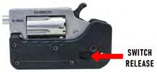2. Using your thumb placed on the Switch Gun "switch release" button, firmly pull it downward to activate the swing open action.
