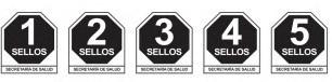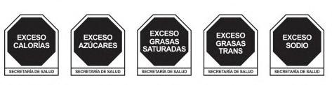 Aquellos productos que cuentan con un tamaño de exhibición mayo o igual a 40 cm2, portarán octágonos negros con el número que indique la cantidad de sellos; esto ha generado gran controversia, debido a que no especifica que ingrediente o nutrimento se encuentra en exceso.