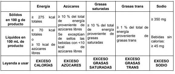 Estos sellos se implementan cuando el producto contiene uno o más de estos ingredientes en grandes cantidades, es importante destacar que estos no aplican para productos con un solo ingrediente como aceite, huevo, azúcar, entre otros