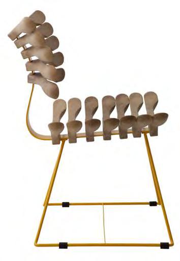 Pasca escolheu a sua cadeira Esqueleto para entrar em produção. Este ano, Pedro apresenta três peças: cadeira Esqueleto, cadeira Jacaré e poltrona Underconstruction.