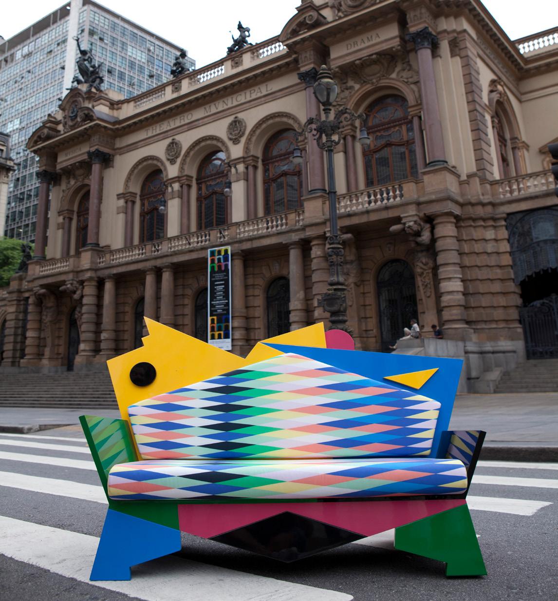 A Siamese Chair desenhada por Karim Rashid (2014) no Viaduto Santa Efigênia em São Paulo