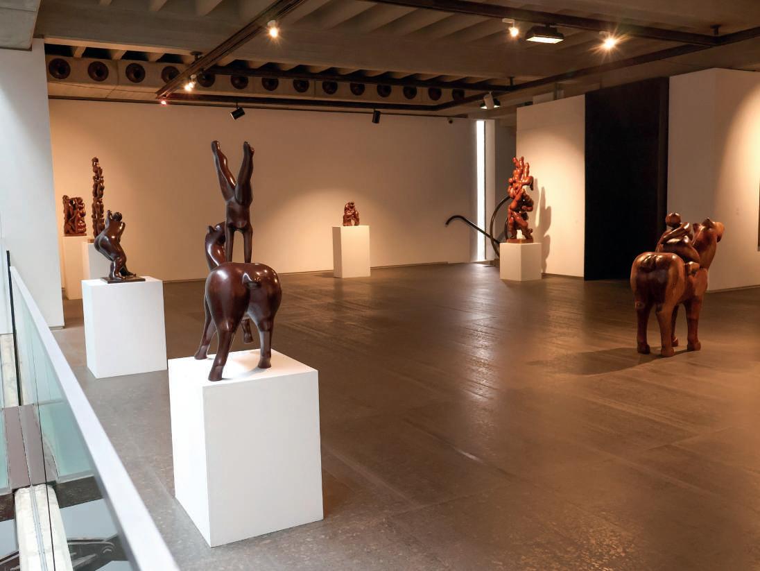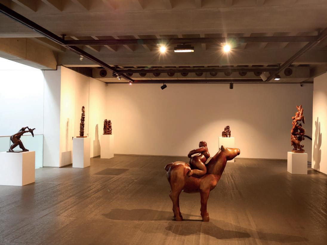 Hemos querido vincular estos principios con su obra escultórica de carácter figurativo en la que, a pesar de desarrollar volúmenes categóricos y contundentes, las proporciones y formas desafían el equilibrio y la gravedad, sostenidas con una potente fuerza estructural.