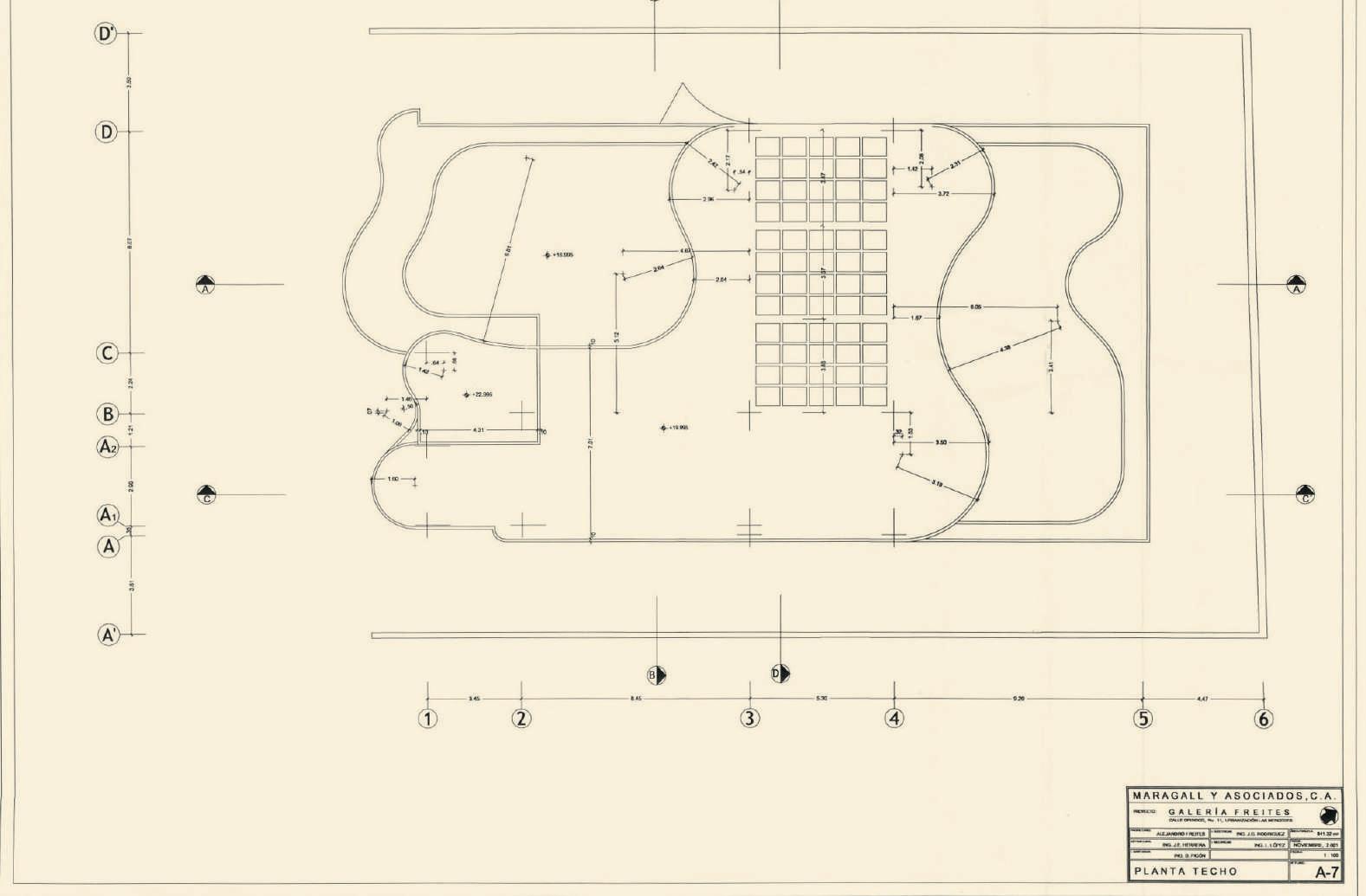 Finalizada en 2006, la Galería Freites es un ejemplo claro del diseño del arquitecto Julio Maragall de una edificación escultórica. La fachada principal está modelada por altas y sinuosas paredes curvas acabadas en tablillas de arcilla, ciegas al exterior, solo permitiendo ventanas en puntos focales. La arquitectura interior, resuelta en líneas rectas, contrasta con los inmensos volúmenes escultóricos exteriores, creando tensión en la resolución de los espacios. Los cuatro pisos se organizan en torno a una entrada central de luz natural, ubicada en la terraza, proporcionando una condición etérea a las salas inferiores, y que se decanta e ilumina cenitalmente a la escultórica escalera central ubicada en la planta de acceso. El interior, minimalista, con amplias y luminosas áreas y paredes blancas, les cede todo el protagonismo a las obras de arte.