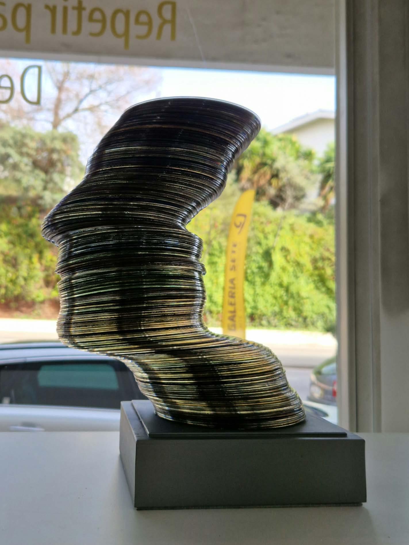 In the work "Imagine", stacked music CDs are transformed into an almost magical pro le of John Lennon, de pending on the angle one looks at it. Felipe almost always works with objects known to the viewers so that what is known about them can be revised and transformed through his compositions.