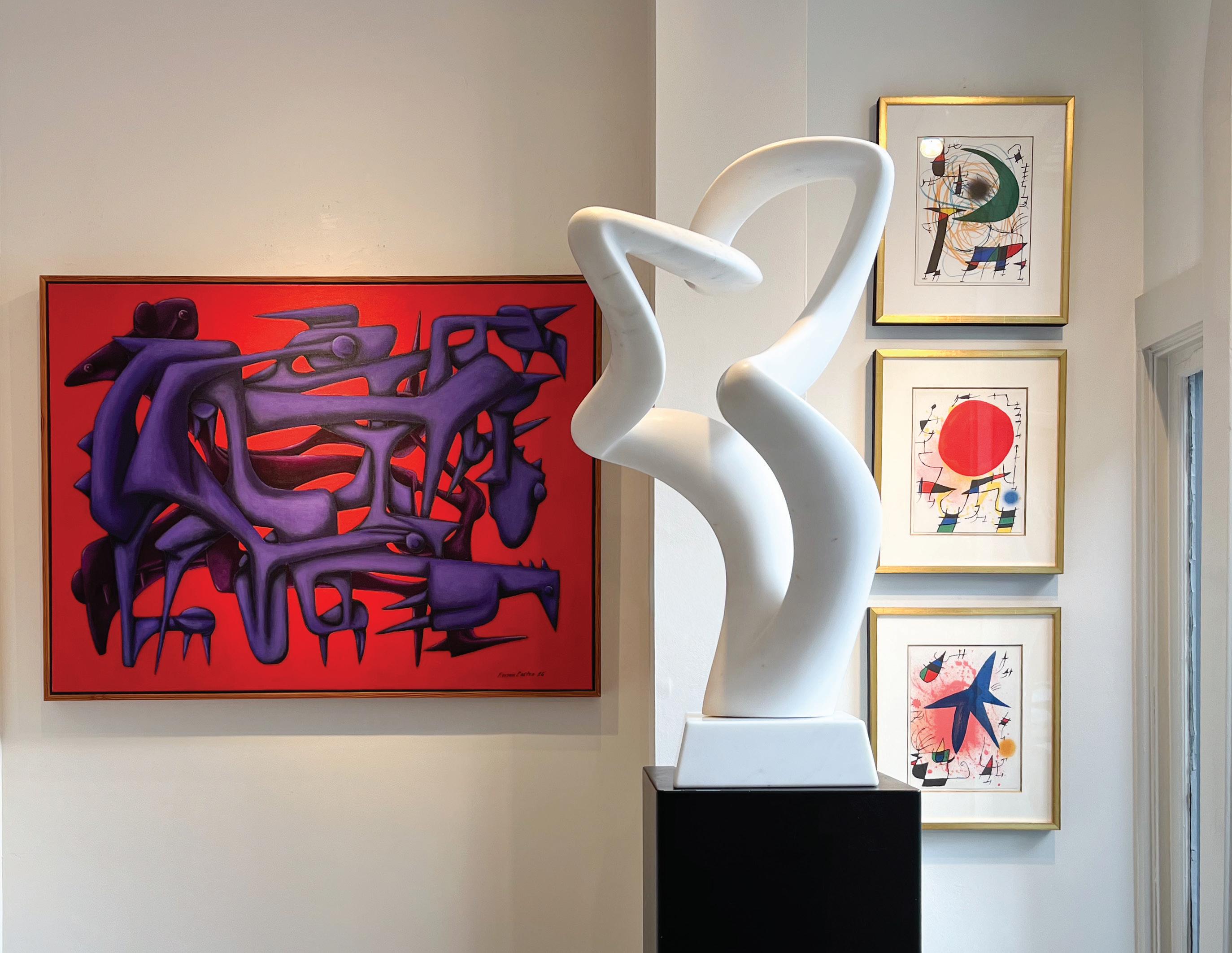 Striking works by Salvador Dalí and Joan Miró highlight their masterful draftsmanship and bold imagery, further cementing their status within the Surrealist canon. Completing the collection is Fermin Castro, an emerging Cuban-born sculptor and painter based in Massachusetts. Castro’s abstract-figurative wooden forms draw inspiration from Cuban and Afro-Cuban traditions, mythology, and nature—transforming wood from a wide range of geographical areas into imaginative sculptural worlds.