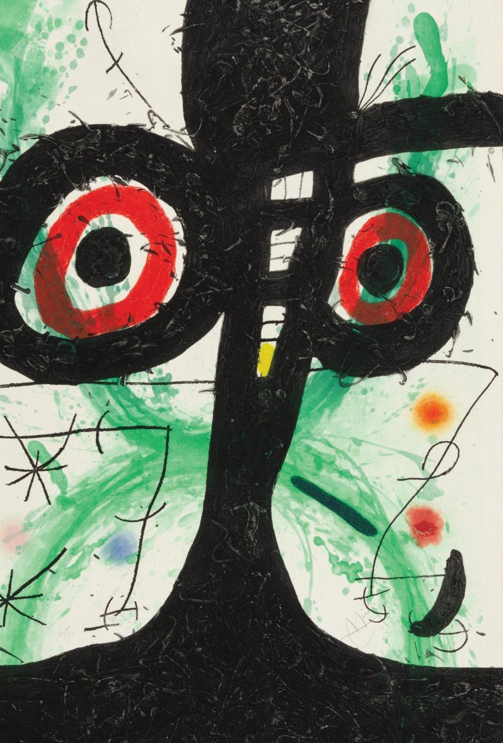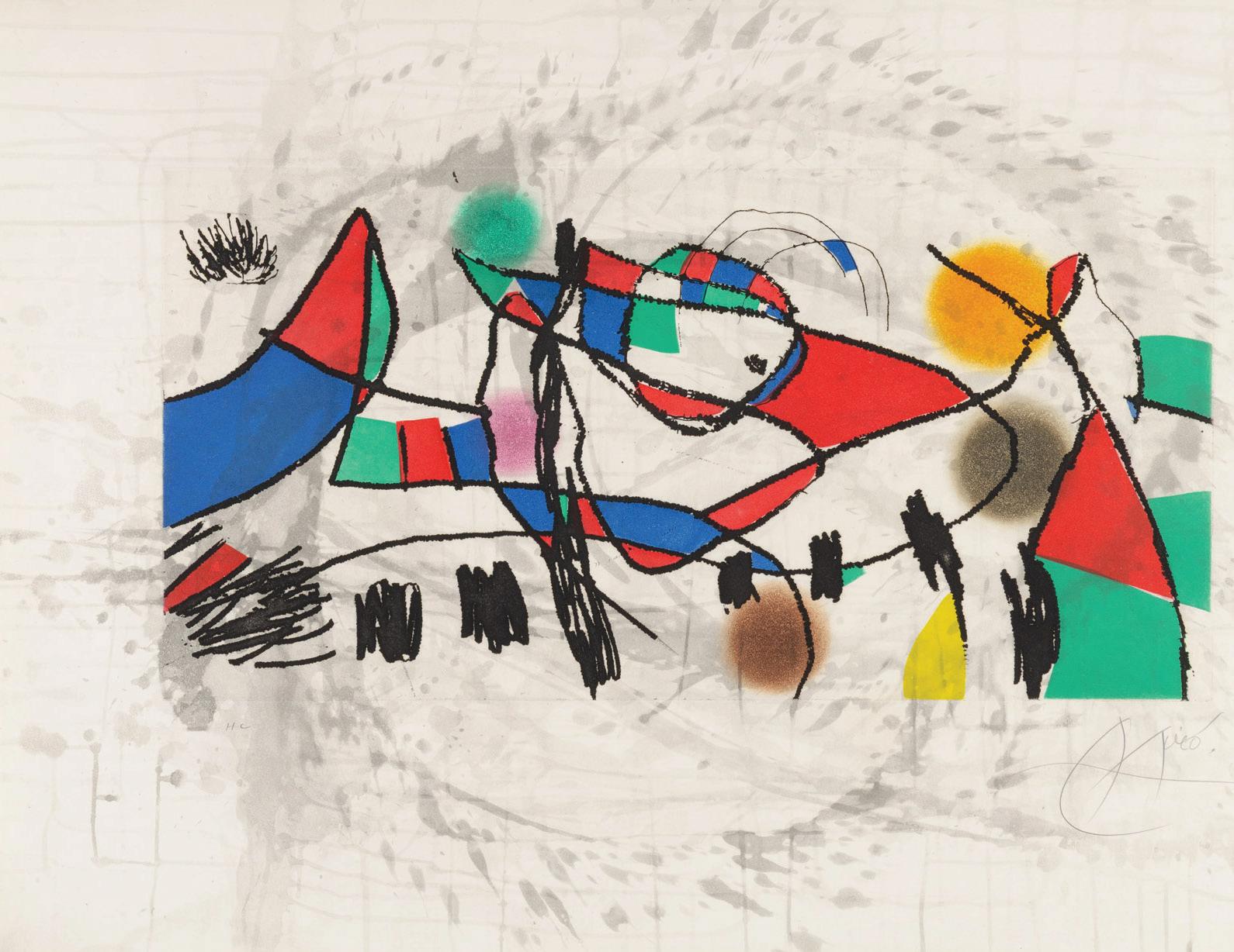 A leading figure in Surrealism, Miró was born in Barcelona in 1893. After his early studies in art and a brief stint in business, Miró suffered a breakdown that led him to pursue painting fulltime. His early work was influenced by Fauvism, Cubism, Catalan folk art, and Romanesque frescoes. After moving to Paris and meeting the Surrealist poets and painters, his style evolved into a unique fusion of fantasy, memory, and the irrational. Known for his organic shapes and bold colors, Miró explored etching, lithography, ceramics, and mixed media. He earned major accolades for his artwork, including the Grand Prize at the Venice Biennale (1954) and the Guggenheim International Award (1958). Miró passed away in Majorca, Spain, on December 25, 1983.