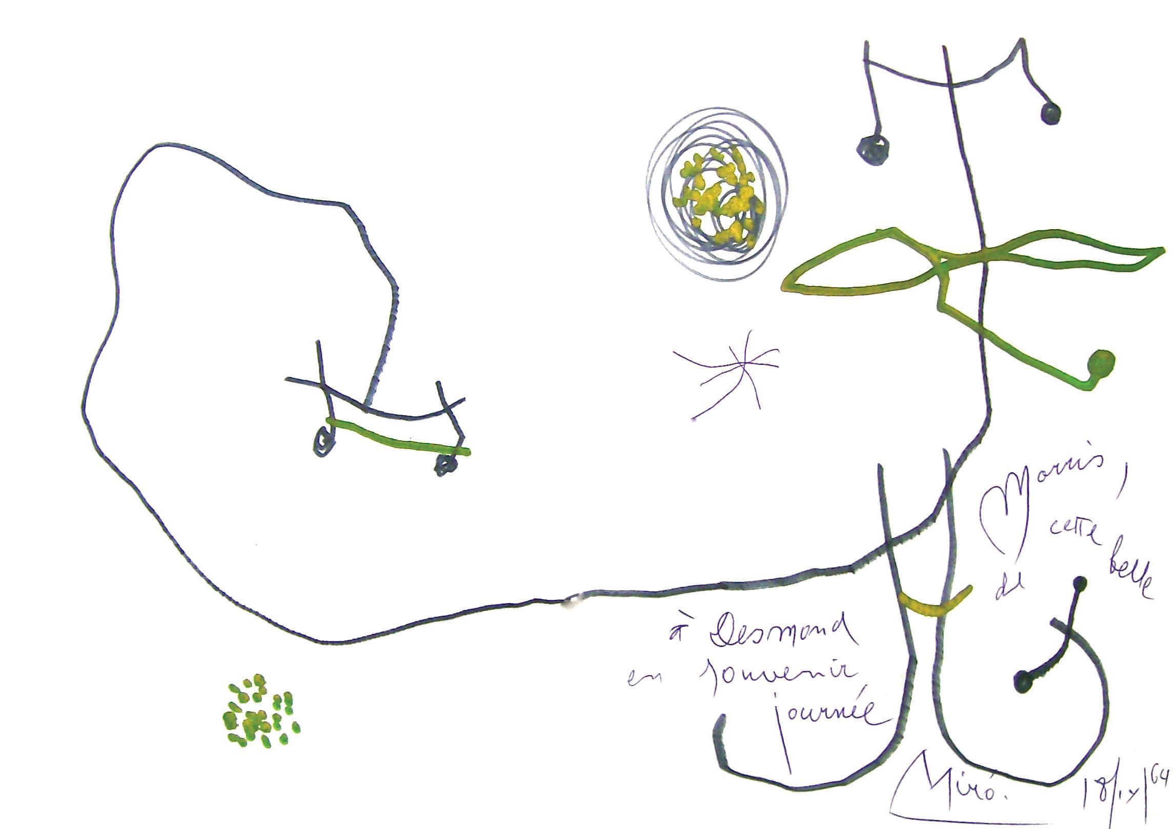 In 1964, Joan Miró visited Desmond Morris at the zoo. As a souvenir of their time together, Miró created this drawing above for Morris, depicting a chameleon eating a fly.