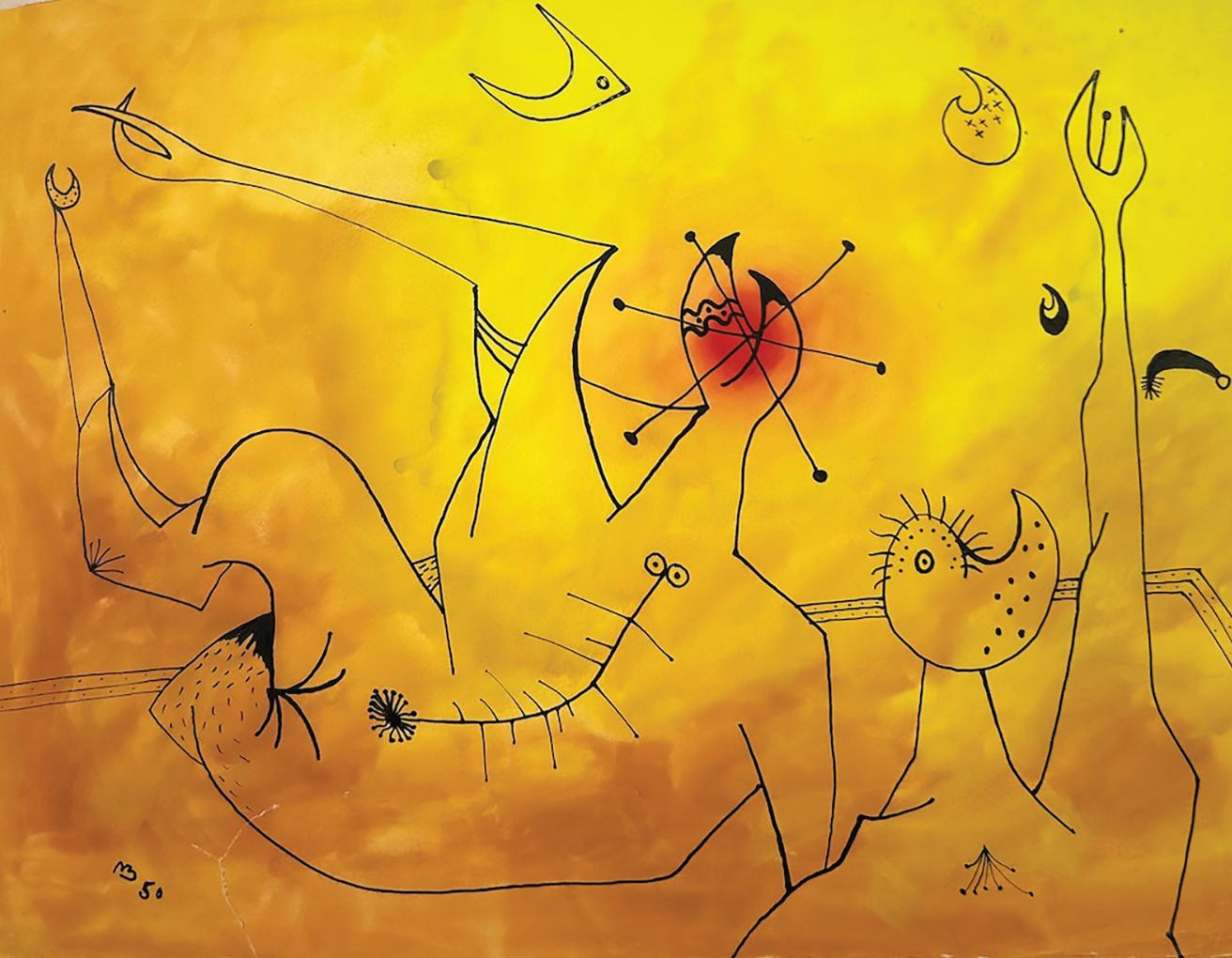Birdmaster, 1960, Gouache and Ink on Paper, 8” x 10”