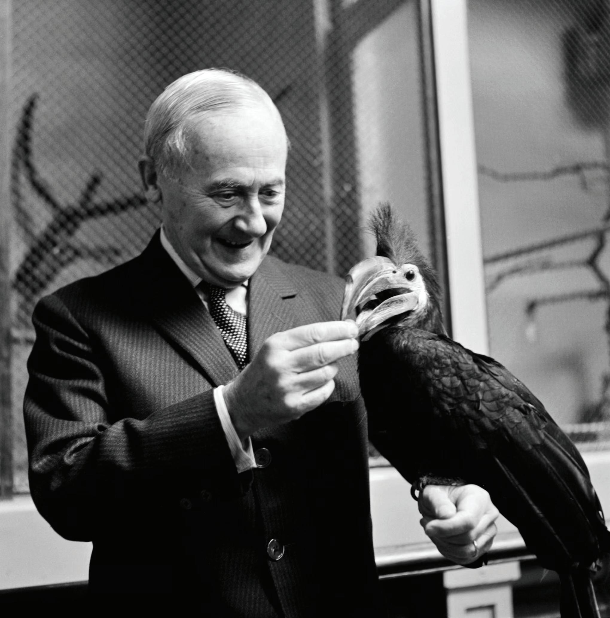 Joan Miró feeding a hornbill at London Zoo, 1964, photograph by Lee Miller