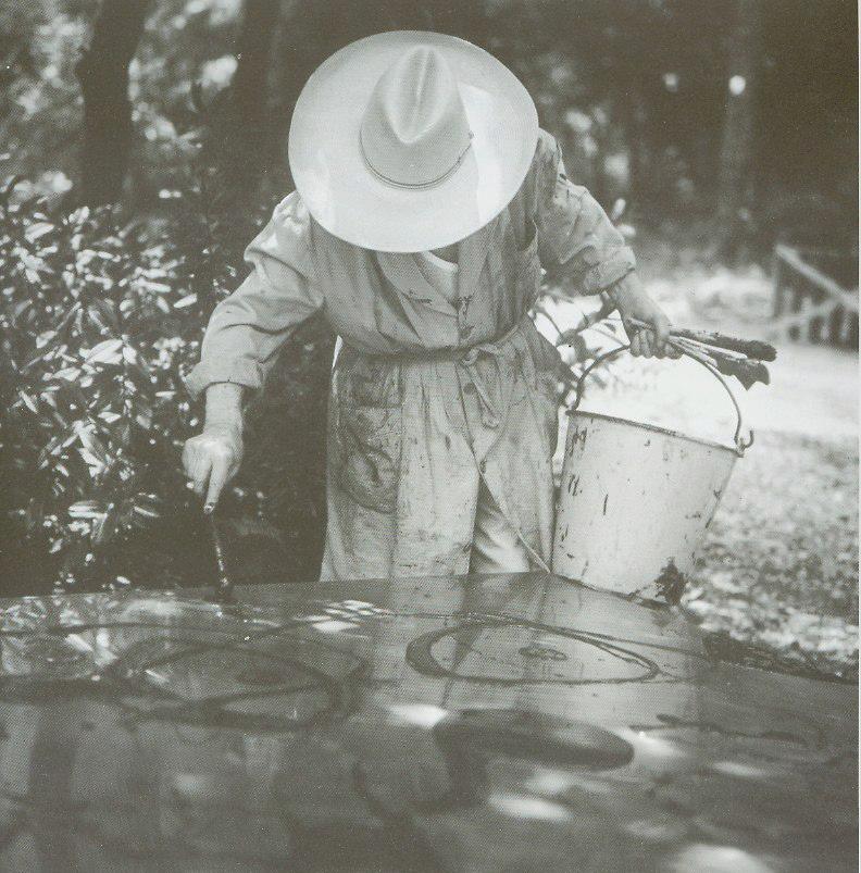 Miró was as avid a printmaker as he was a painter. Major museums around the world cherish not only his paintings but also his lively and enigmatic etchings, lithographs, and carborundum editions. Intentionally leaving us in the lurch, Miró often gives us a circle that we may interpret as an eyeball. Our minds begin to develop the eyeball into a creature. Is it a seahorse? A cat? A scorpion? Here we see Miró working on one of his highly celebrated carborundum prints.