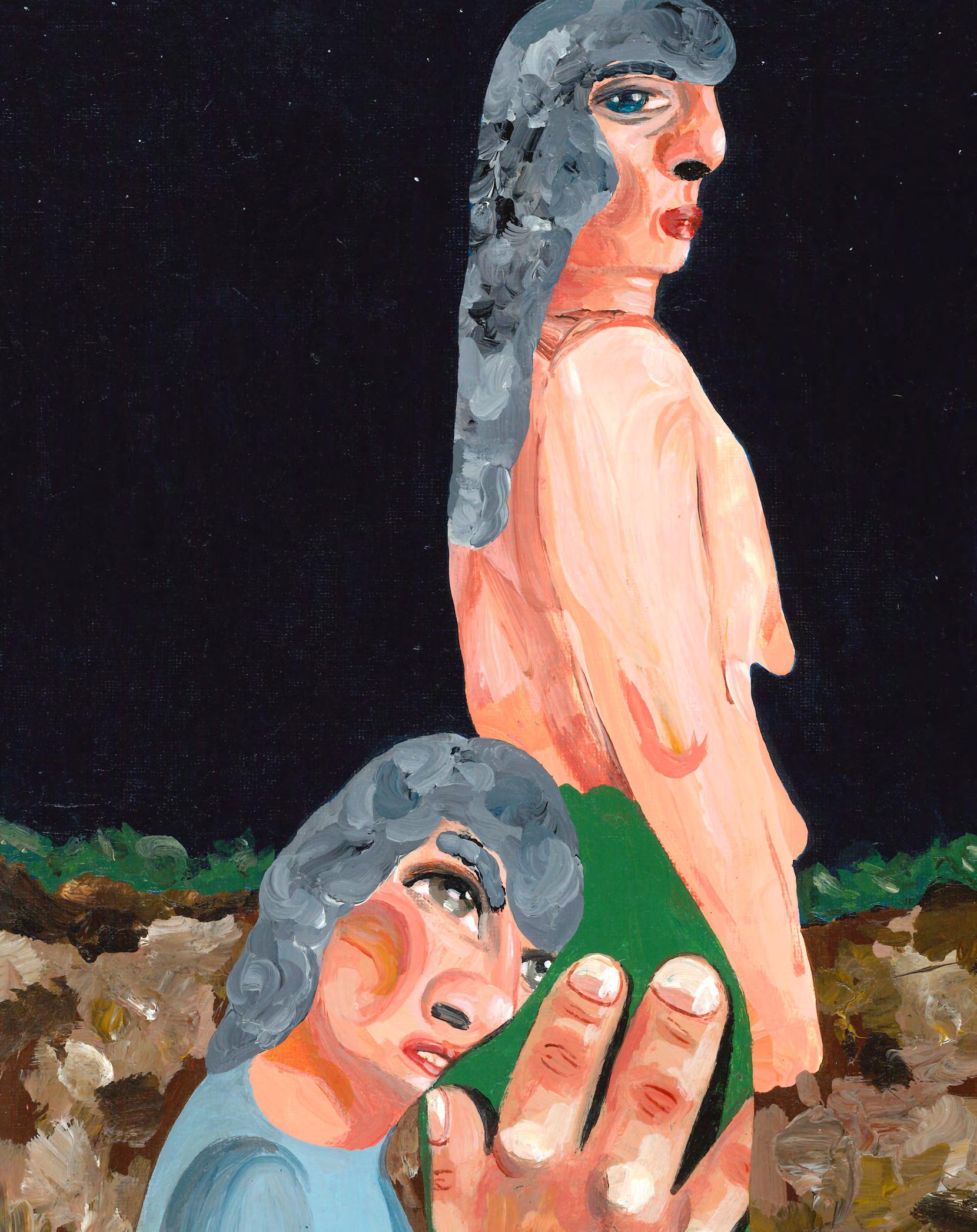 Xie Lei, Protection, 2023, oil on canvas, 90 × 65 cm.