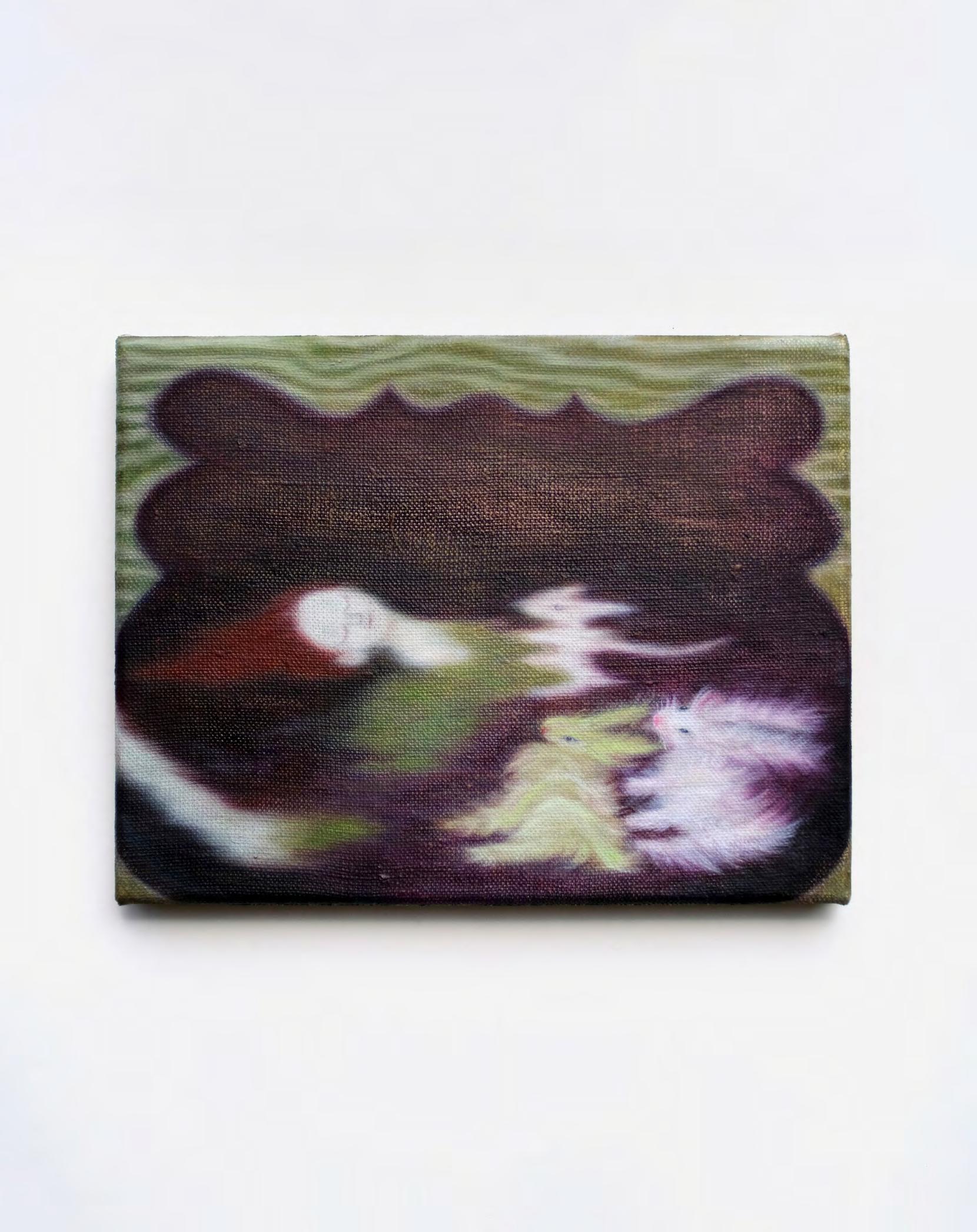 Lisa Braid, Zumindest versunken mit den hasenzwillingen, Springmaus ruht sich aus auf meinem Herz. Ich Lächle, 2025, oil on canvas, 30 × 20 cm. Courtesy the artist. Photo by Lisa Braid
