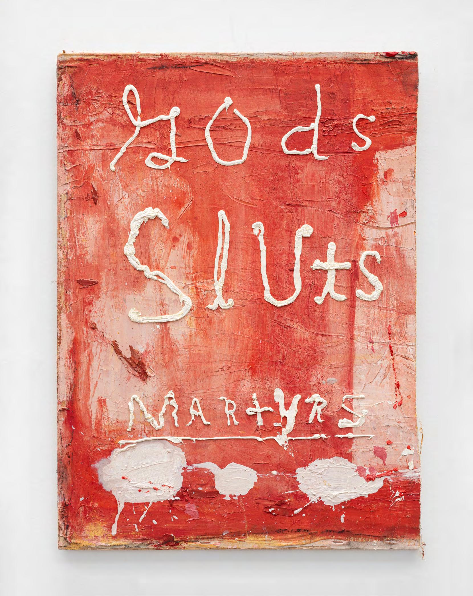 Peter Gallo, Gods, Sluts, Martyrs, 2024, oil on canvas stapled to panel, 53 × 38 cm. Courtesy the artist and Adams and Ollman. Photo by Area Array