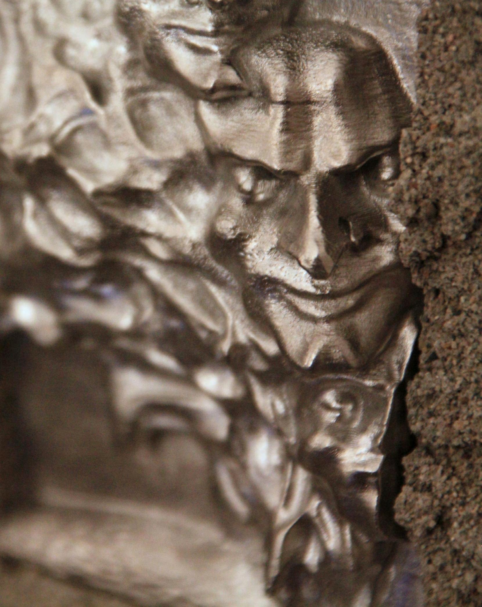 and contour. The work documents its own decline—a gradual abstraction in which reproduction becomes reduction. Each bronze bears traces of the previous one, forming a cycle of loss and transformation until it disappears completely. Supper describes this work as “a painting that cancels itself out.” After casting, he applies a patina to each surface, allowing painterly elements to merge into sculptural form.