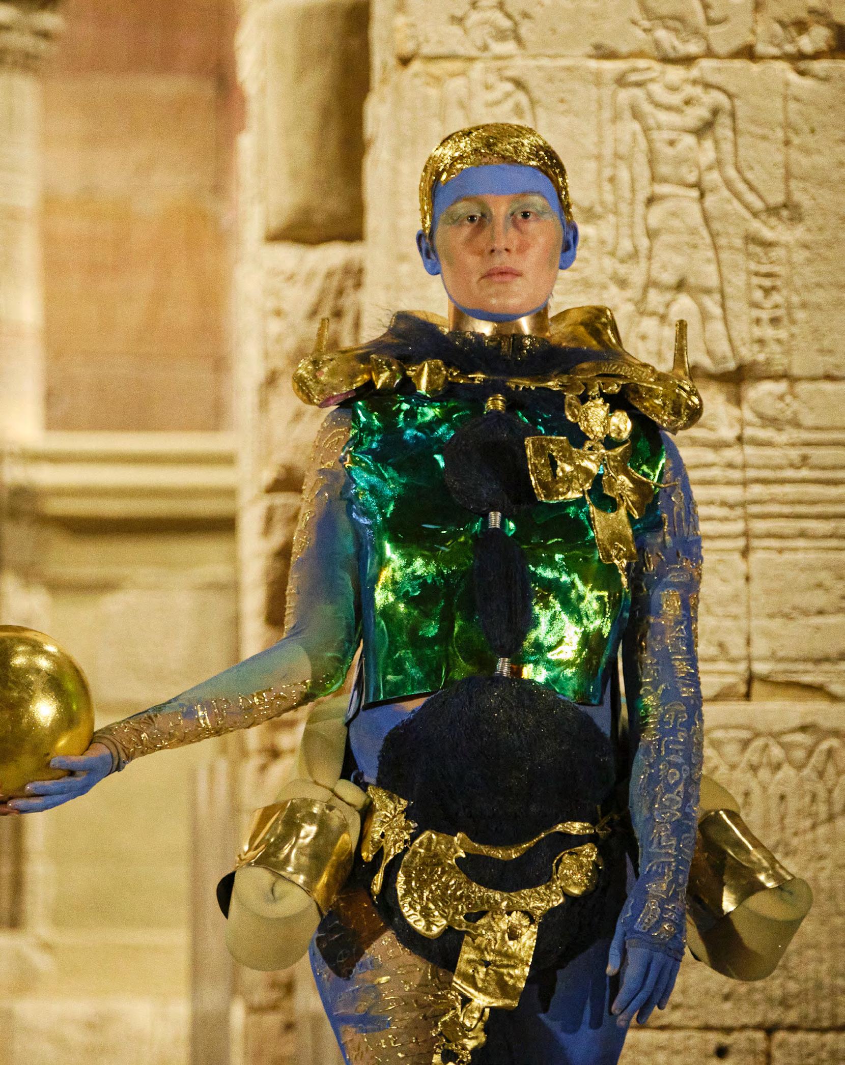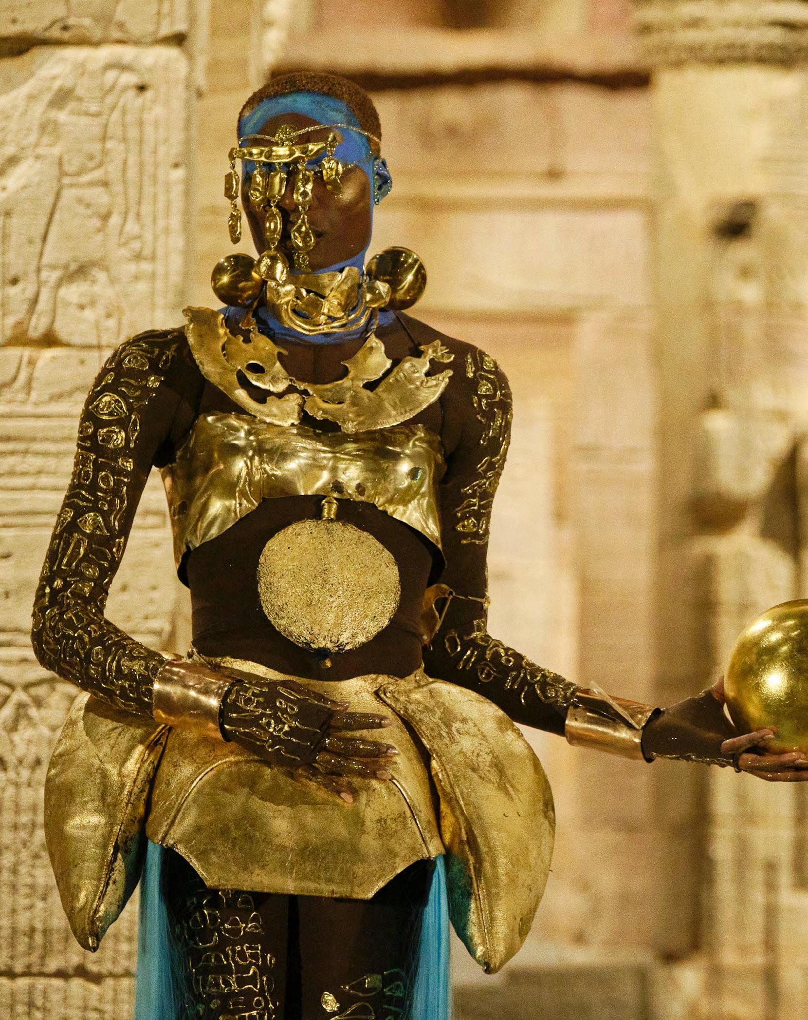In her performance at the Metropolitan Museum of Art, Donna Huanca reimagined the Temple of Dendur as a living body, linking its architecture to the human body, both subject to cycles of renewal and decay. The immersive programme included an audio tour guiding the audience from the Nile to the temple’s gate, where two performers (Huanca’s living sculptures) embodied the temple’s ancient inscriptions, awakening the monument as a site of ritual, memory, and continual transformation. Performers: Yves B. Golden, Bobbi Salvör Menuez